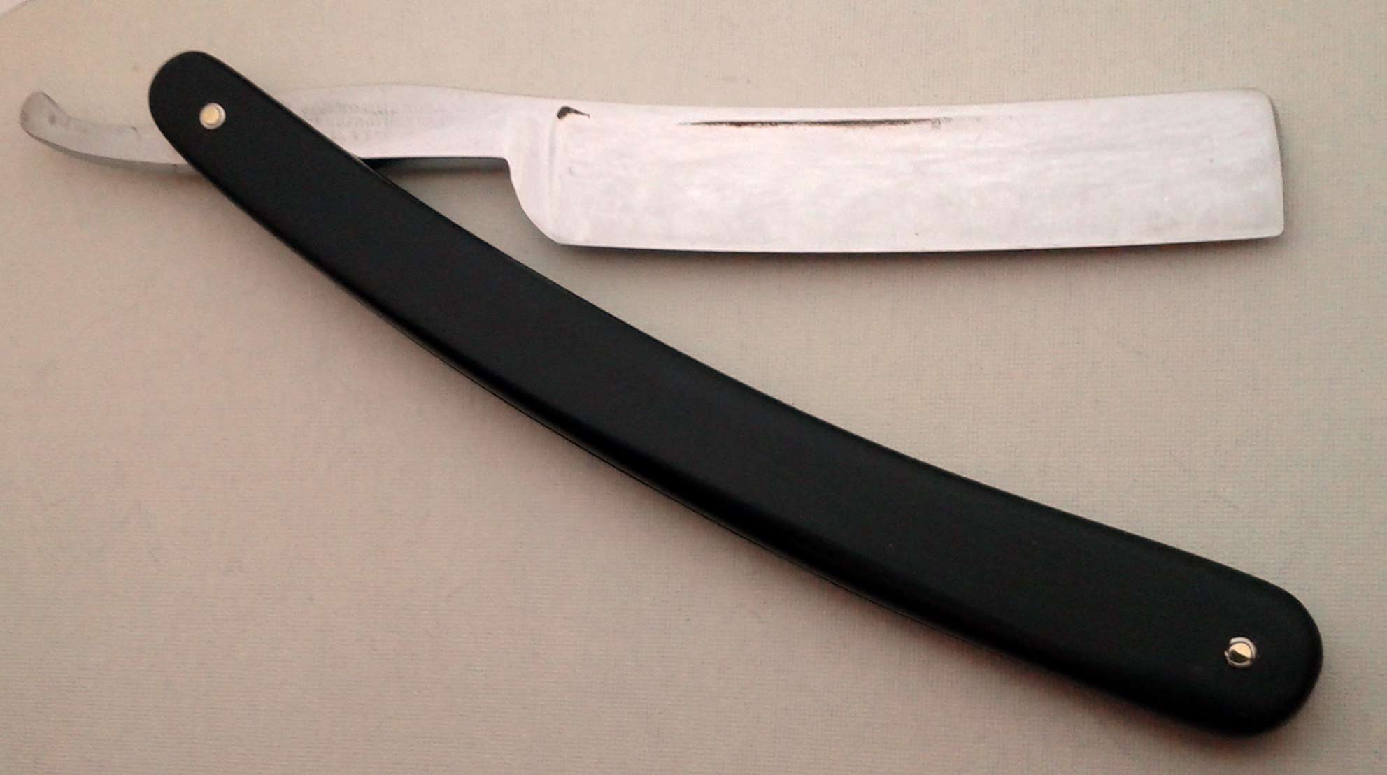 Бритва произведена в Шеффилде (есть фото клейма MOILLIET&GEM'S SHEFFIELD http://www.bladeforums.com/forums/showt ... eld-Dagger" onclick="window.open(this.href);return false;). Ручка - эбонит. Заточена и полностью готова к бритью. Ширина полотна 17 мм, толщина в обушке 5 мм.