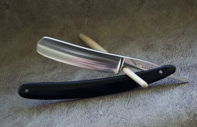 Япония. Бритва изготовлена из Silver SteeL. В заточке напомнила старую шеффилдскую углеродку, очень приятная и удобная бритва. Форма носа был немного изменена предыдущим владельцем. Ширина 6/8. Заточена, готова к бритью. Продано Spoiler Show