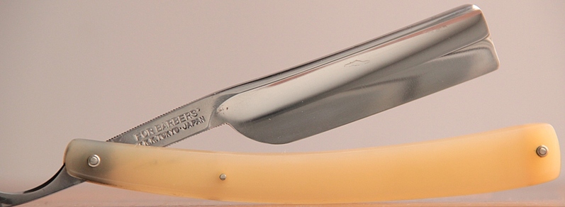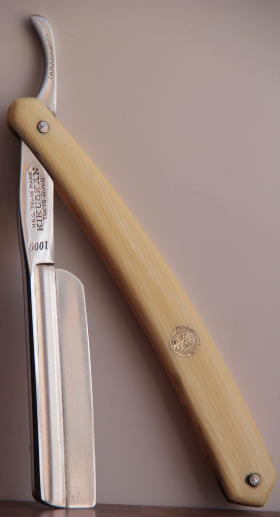 Совершенно нетронутая бритва ни временем, ни заточными камнями. Как по мне, так не только исключительная по красоте бритва, но также и отличный инструмент в опытных руках. Прекрасное, мягкое бритьё. Проверено не раз.