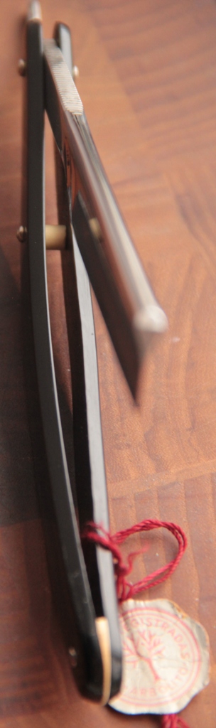 Бритва реально красивая и её приятно взять в руки. Всё оригинальное и ничего не разбиралось. Единственно что я сделал, так это немного деформированную пластиковую плашку оправы, путём нагрева поставил на место.(фото). Ручка надёжная, трёх-пиновая. Бритва среднего размера, элегантная. Сталь и кромка чистые , без каких либо проблем.Идеальная геометрия.