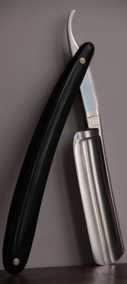 Отличная "звенящая" сталь, с идеальной геометрией полотна. Крупная, удобная, надёжная пластиковая ручка. Тяжёлая бритва.В комплекте с бритвой идёт родной бакелитовый кейс! Бритва заточена и готова к бритью.
