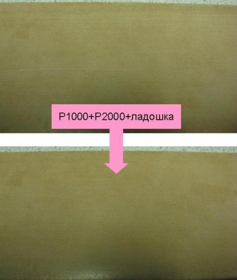 Предлагаемый инструмент исключительно ремонтопригодный. Не надо лезть в ремень или борд грубыми абразивами - испортите геометрию. На ремне достаточно потереть место повреждения наждачкой 1000-1500, затем 2000 и ладошкой (см. фото). Для профилактической чистки ремня можно пройтись по нему наждачкой 2000 или выше и потереть ладошкой.