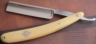 Ширина полотна-19.5 мм. Толщина обушка-5 мм. Полная вогнутость. Фирменная Пумовская углеродка. Середина 20-го века. Бритва не разбиралась.Освежил металл полотна и поточил. Идеальная геометрия изготовления. Мощная трёх-пиновая оправа. Коррозии и ржавчины нет. Заточена и готова к бритью. Цена-4500 р с доставкой.ПРОДАН Внимание! Важная информация! Spoiler Show