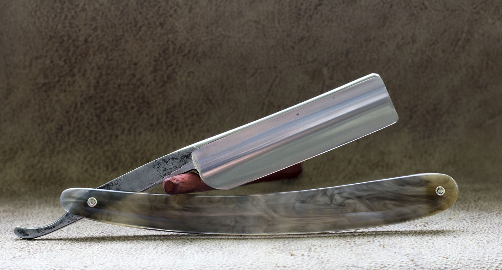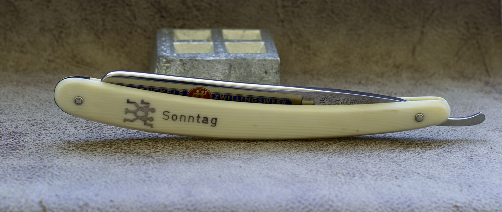 Редко встречающаяся марка бритв из Шеффилда. Ширина 6/8, вогнутость полная или правильнее сказать 3/4, хотя разница между минимальна, эластичная режущая кромка, прекрасная мягкая сталь, новая рукоять из кости верблюда. Бритва заточена и готова к бритью. Одна из немногих бритв, протестированных мной лично - дала очень приятный результат в бритье полутора недельной щетины, причем сохранила достаточную остроту и прошла после бритья тест на рез волоса, рекомендую как новичкам, так и коллекционерам. Продано. Spoiler Show