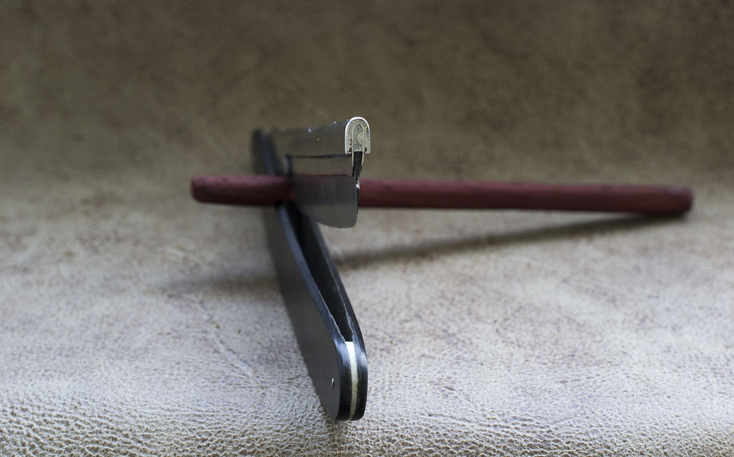 Япония, Середина 20 века. Европейская опасная бритва сделанная на манер традиционной японской камисори. Имеет разную вогнутость с одной и с другой стороны, что не мешает одинаково эффективно использовать ее при бритье обращая к лицу любой из сторон. Лишена проблем большинства камисори - разной ширины фасок с разных сторон, точится как обычная европейка, между тем имеет небольшую длину что покажется очень удобным большинству пользователей опасной бритвы. Ширина 6/8 (18.5мм) Подойдет в качестве первой основной бритвы. Заточена, готова к бритью. продано Spoiler Show