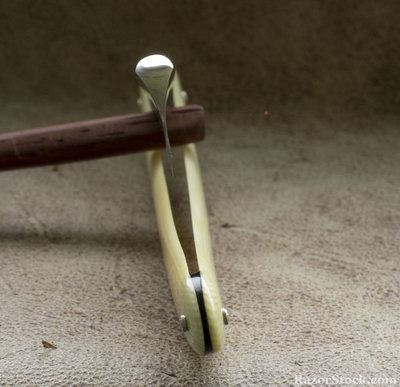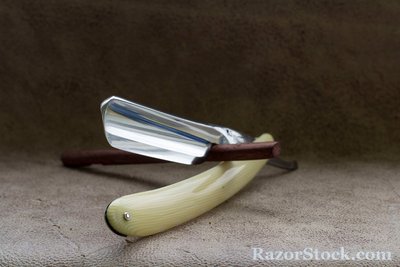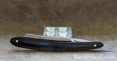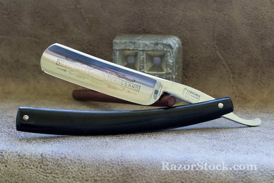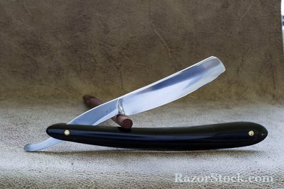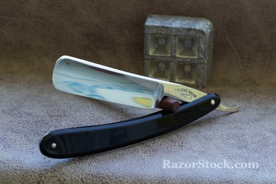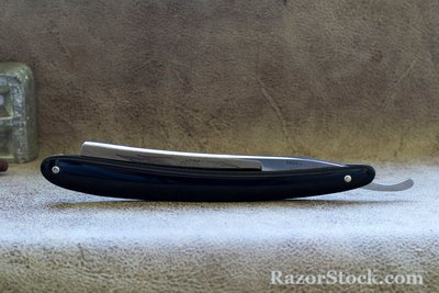 Бритва по всей видимости не была в использовании. Полотно в отличном состоянии, за исключением небольшого пятнышка окисления возле обушка. Нарядная пластиковая оправа, бритва не разбиралась и не ремонтировалась. Ширина 6/8, заточена и готова к бритью. Продано. Spoiler Show