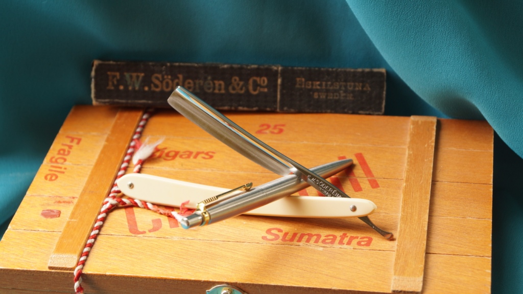 Бритва в эксплуатации не была, состояние отличное. Нет клейма производителя, видимо какой то заказ (может для парикмахерских или армии), но швед однозначно. Размер полотна чуть меньше 4/8 ( 12 мм), ручка из целлулоида. Бритва заточена и готова к бритью. Цена: снята с продажи, осталась в личном пользовании, великолепный рез 41-я Show