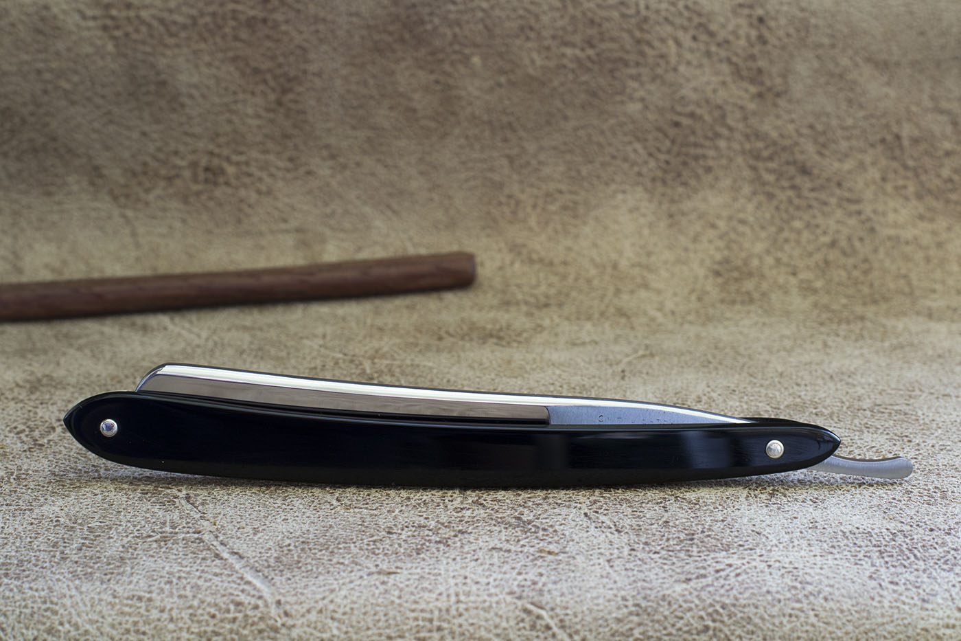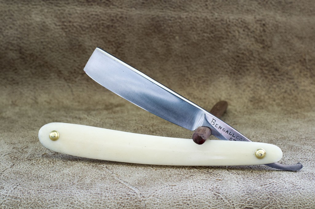 Английский Бенгалл времен Томаса Рэдли Кадмана. Рукоять из рога, протравленного под черепаху, родные латунные шайбы, ширина полотна 5/8 дюйма, полная вогнутость. Период изготовления конец 19 - начало 20 века. На обухе были незначительные следы от камня, я считаю это заводская заточка, так как кромка не была сведена и бриться с такой заточкой просто невозможно. Состояние полотна великолепное, виден заводской сатин, я просто слегка отполировал полотно и освежил рукоять, предварительно разобрав бритву. Бритва заточена и готова к бритью. Продано. Spoiler Show