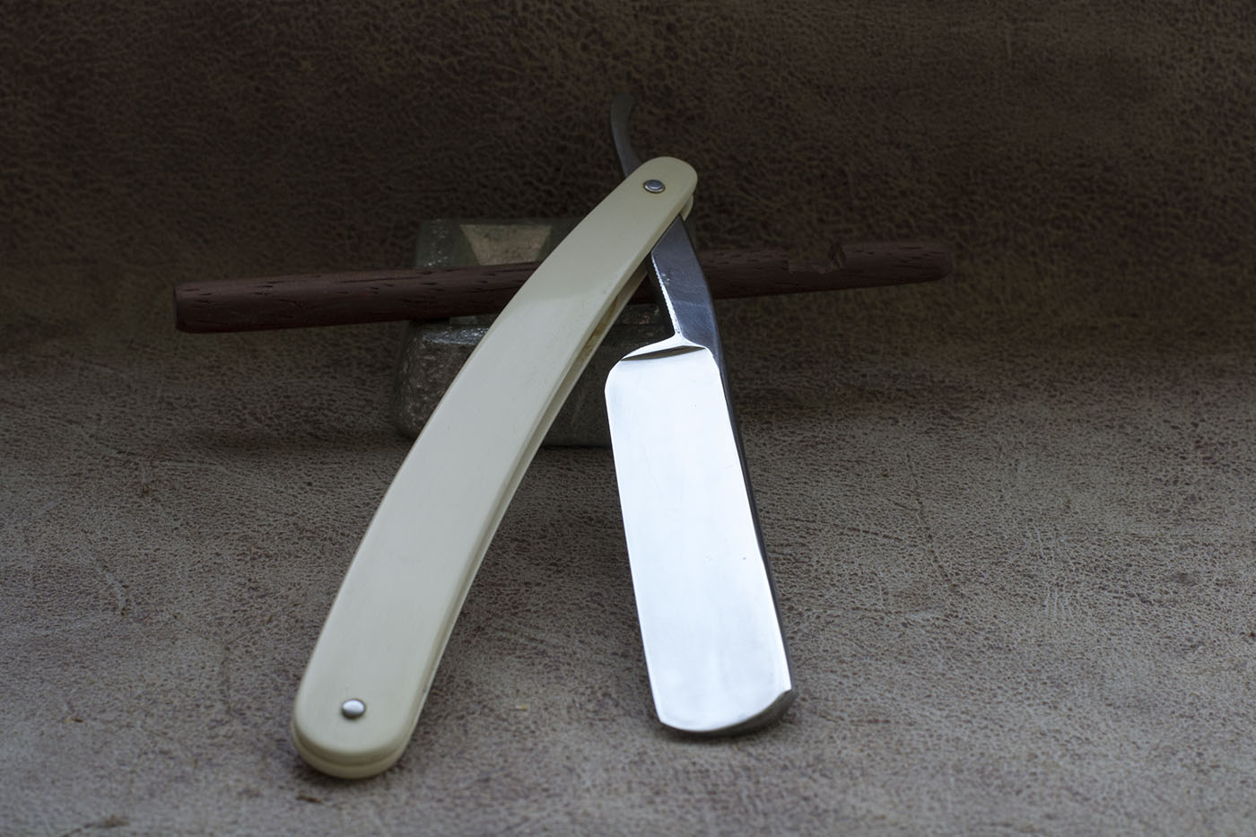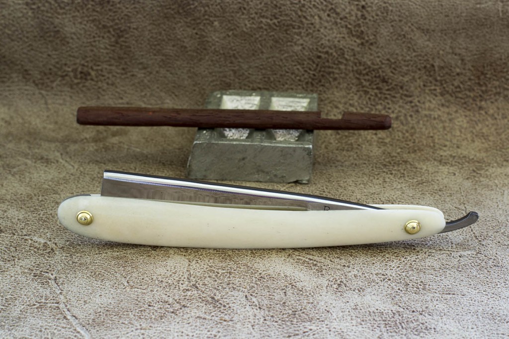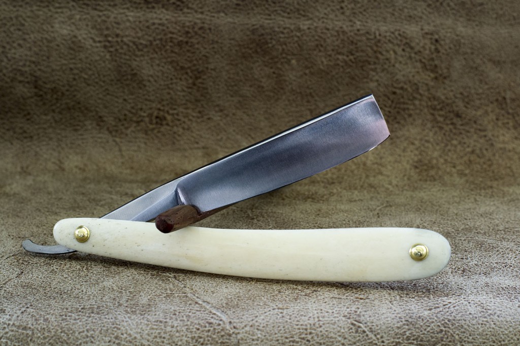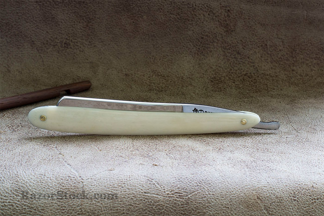 Опасная бритва конца 19 века из качественной углеродистой стали, производства Франции. На бритве не было найдено следов использования, тем не менее произведена реставрация с целью удаления незначительных следов времени. Родная рукоять была заменена на новую из кости верблюда. Ширина полотна 19.8 мм. Спинка 4.8 мм, вогнутость 3/4. Бритва заточена и готова к бритью. Отличный вариант как для новичка так и для продвинутого пользователя, желающего попробовать старую французскую бритву. Продано. Spoiler Show