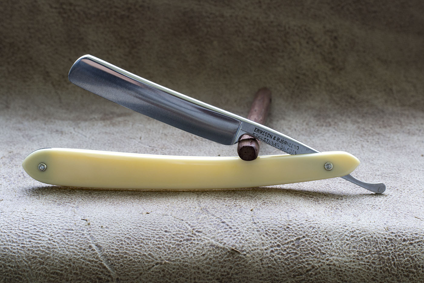 Шведская бритва от пожалуй самого известного производителя в Швеции. Бритвы сделаны для продаже во Франции в магазине Магнуса Киндала о чем свидетельствует надпись а полотне. Ширина 6/8, вогнутость - почти клин. родная рукоять из целлулоида, отличная геометрия. Бритва заточена и готова к бритью, прекрасно подойдет для новичка. Продано. Spoiler Show