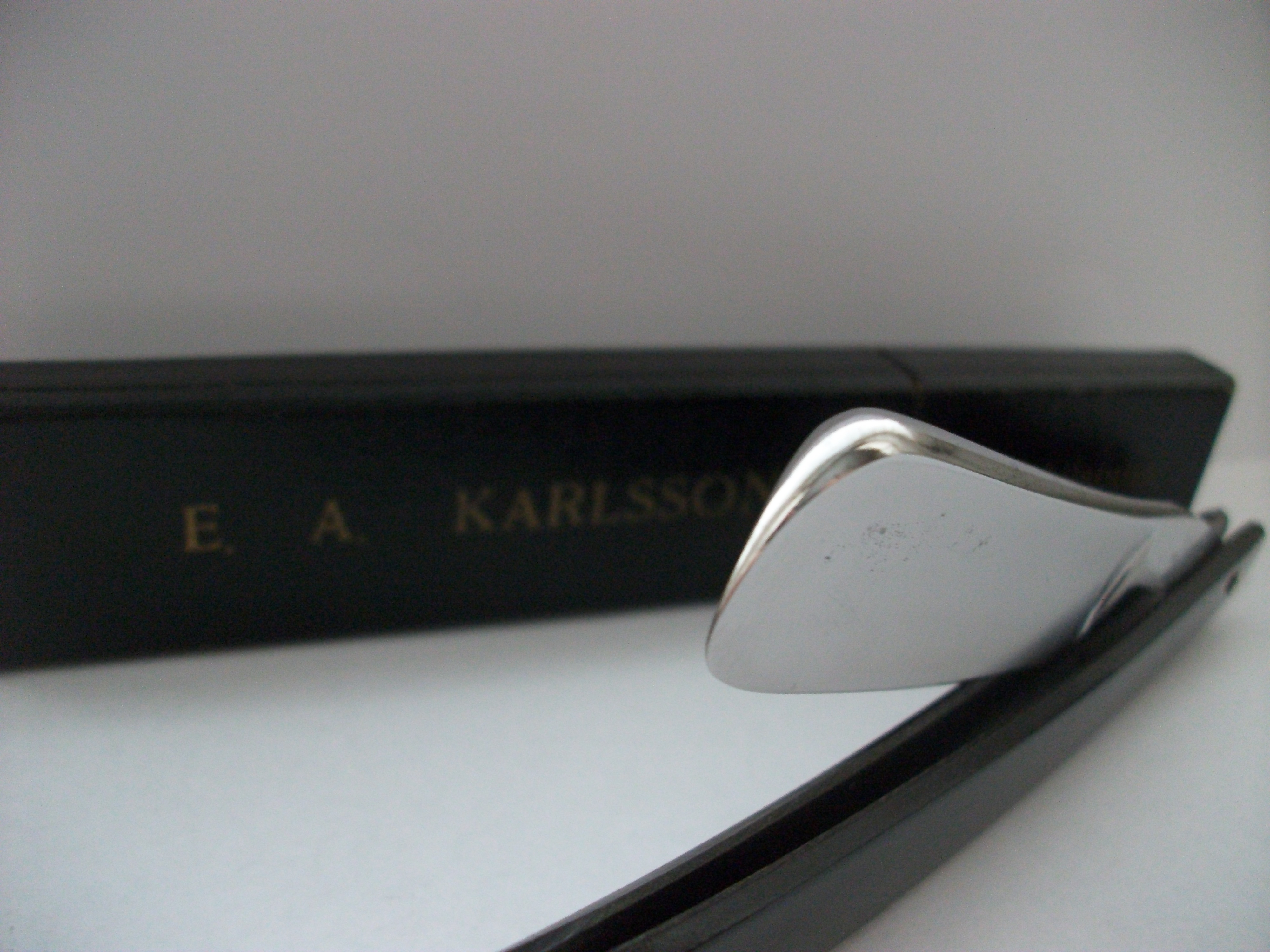 Продается от mister maloiТот самый Карлссон ! (E.A.Karlsson - Eskilstuna) Редкий Шведский производитель, клинок имеет грубоватый заводской сатин, эрль так же не полирован в зеркало и имеет риски, вообще бритва достаточно брутальная и габаритная . Сталь углеродистая, ширина полотна 20мм, ручка пластик. На полотне имеются заводские следы от окалины . Хорошая геометрия . Клеймо производителя выполнено травлением. В общем бритва оставляет ощущение качественной вещи. Цена Продано Spoiler Show
