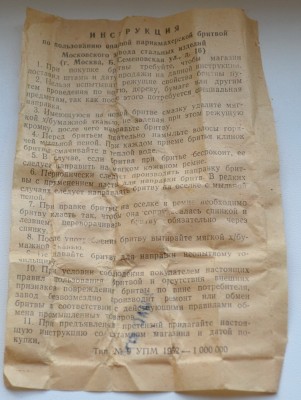 СТИЗ, 70г. Бритвы выпущены в свет(проданы) 7го марта 1970г. Партия была закуплена в парикмахерскую. Новые в смазке в родных коробках.Хранились правильно, в сухом месте, ржавчины нет, шарниры чистые. Ширина 5/8. В наличии 1 штук. с бежевыми ручками. Продано Стиз70 Show Re: Продаётся от FransСТИЗ, 70г. - 1шт. беру с мойкой и заточкой. Спасибо.