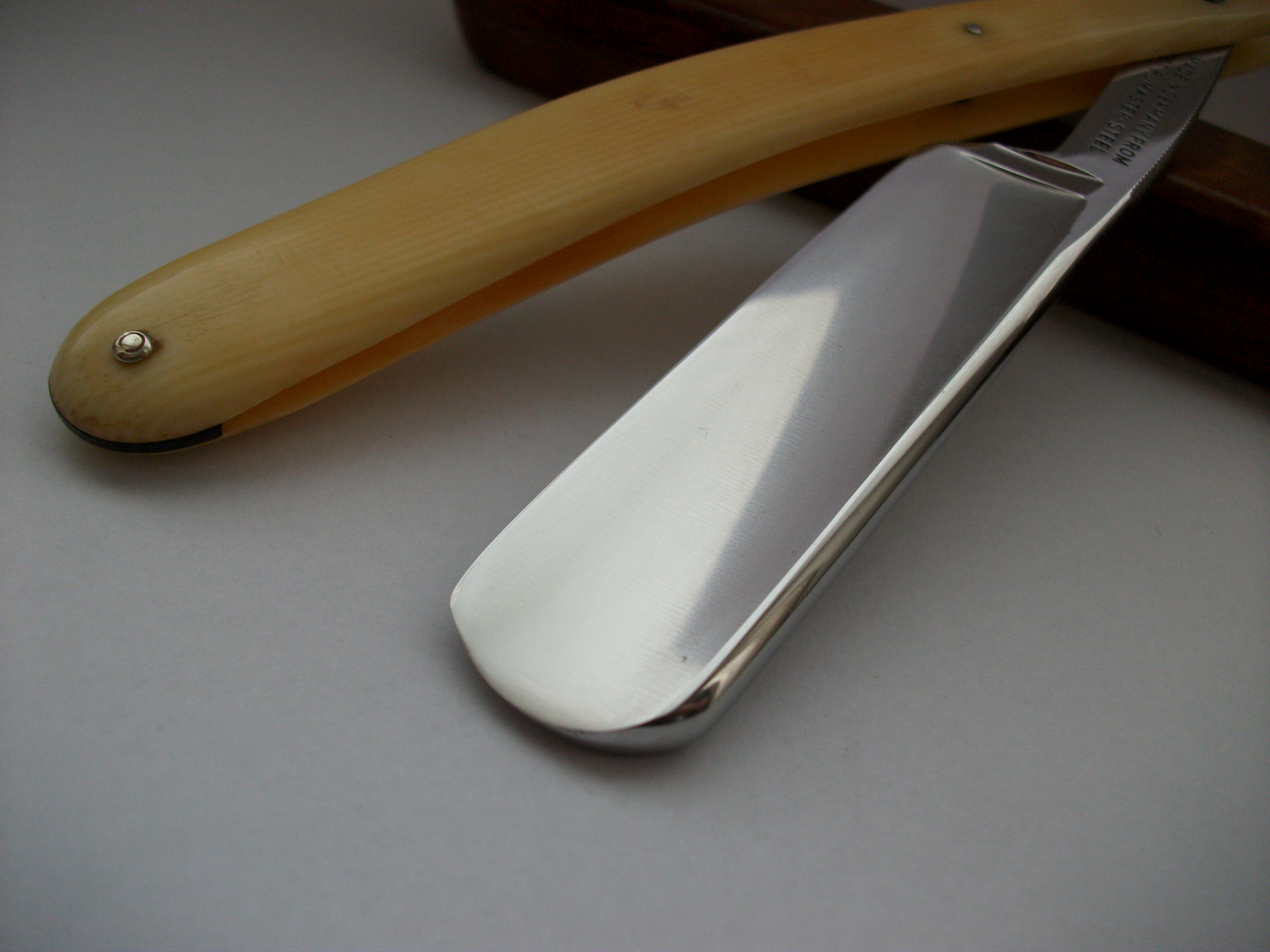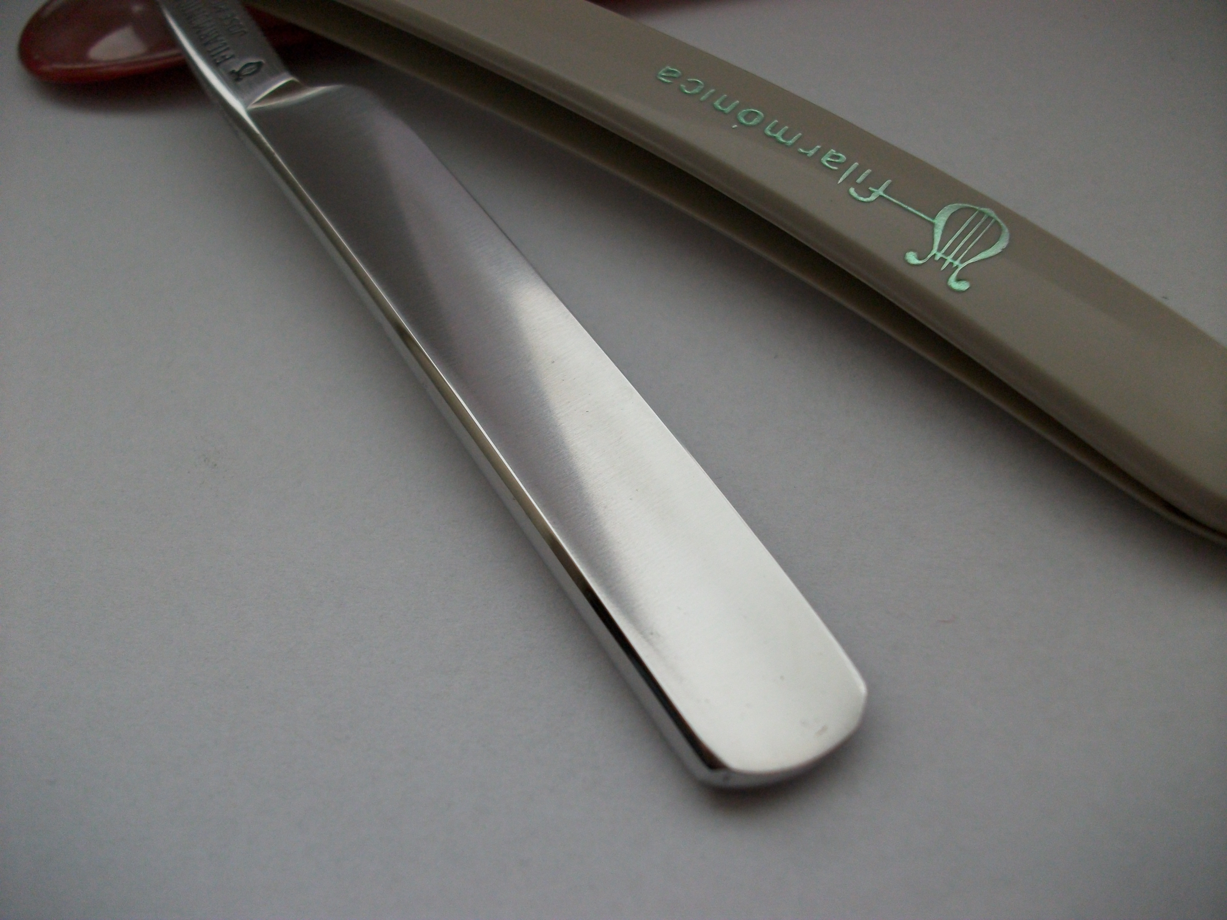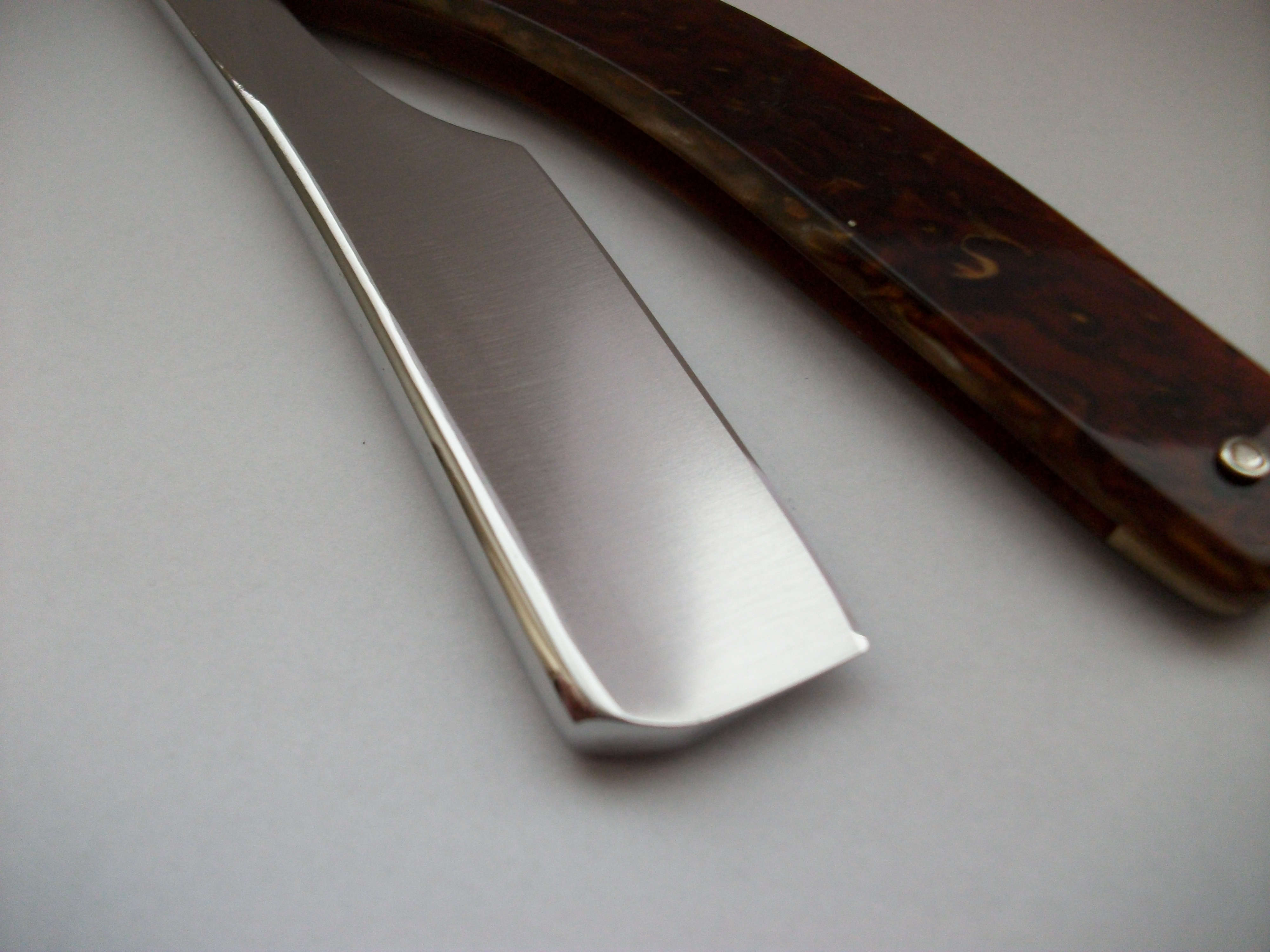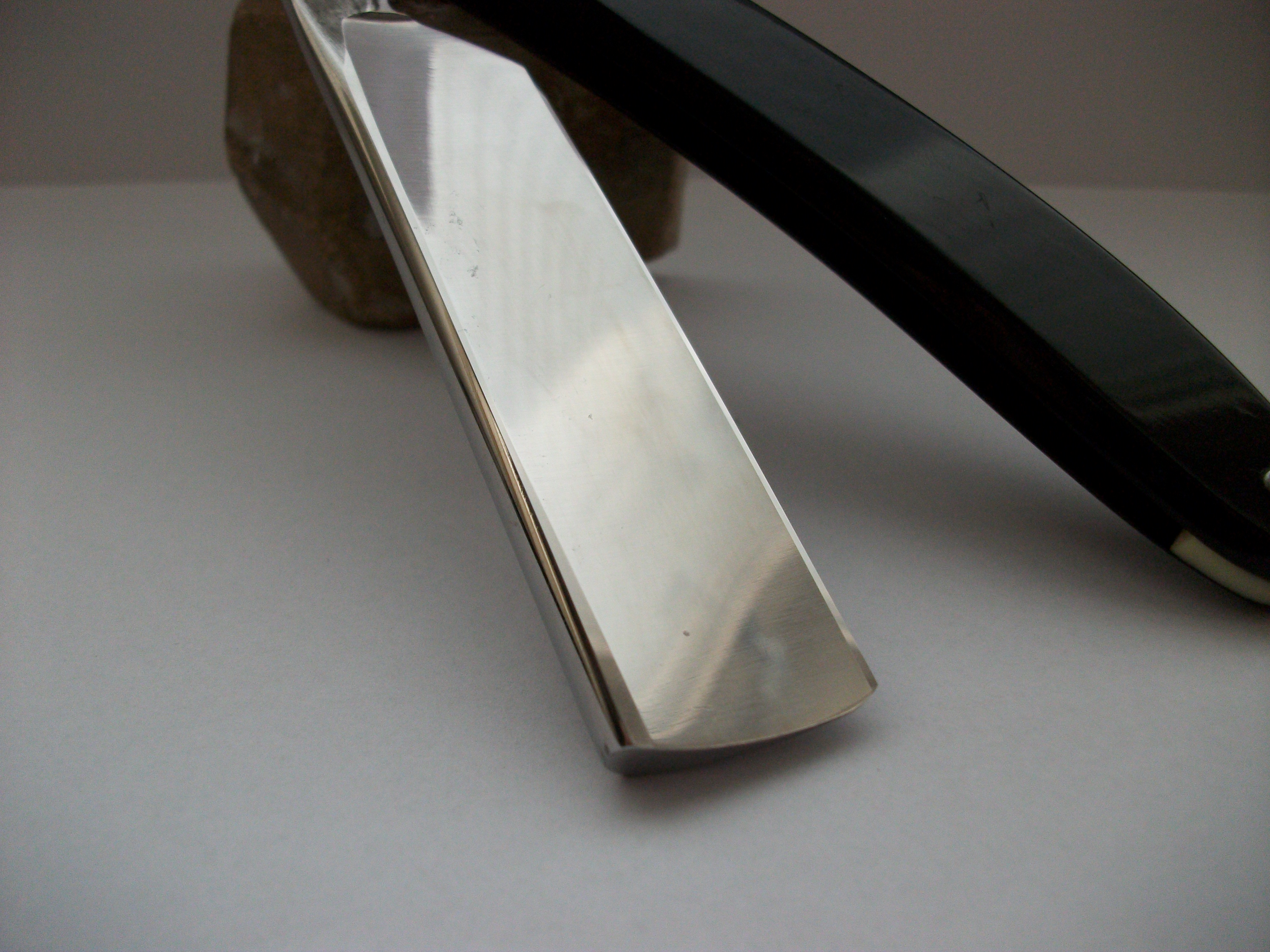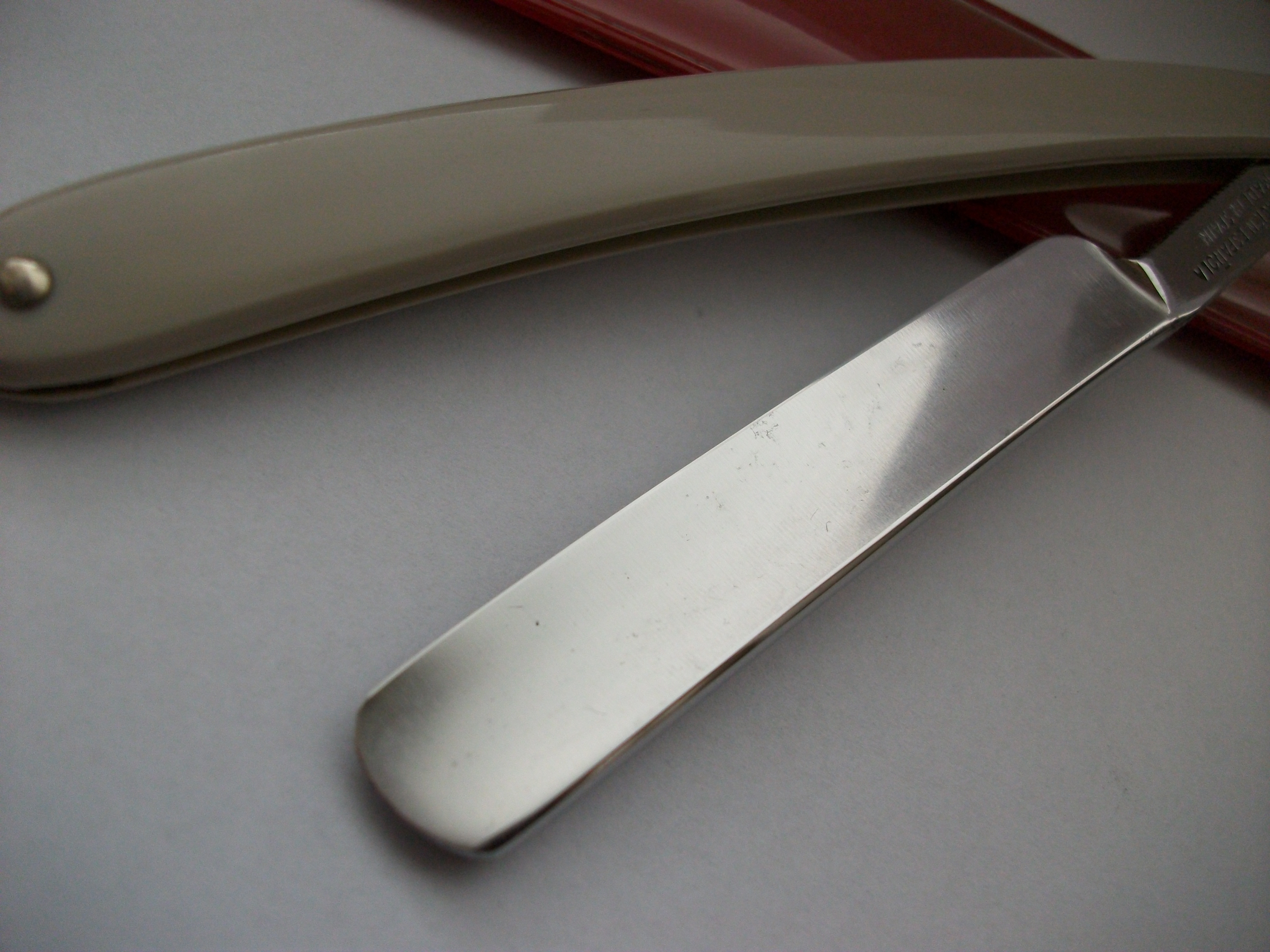 Ширина полотна 20мм, длина режущей кромки 70мм, нержавеющая сталь Frozen-steel (так полагаю закалка с применением отрицательных температур. Ручка классическая Пумовская, 3 пина, непонятные номера у осевого пина. Заточена и готова к бритью. Продано. Spoiler Show