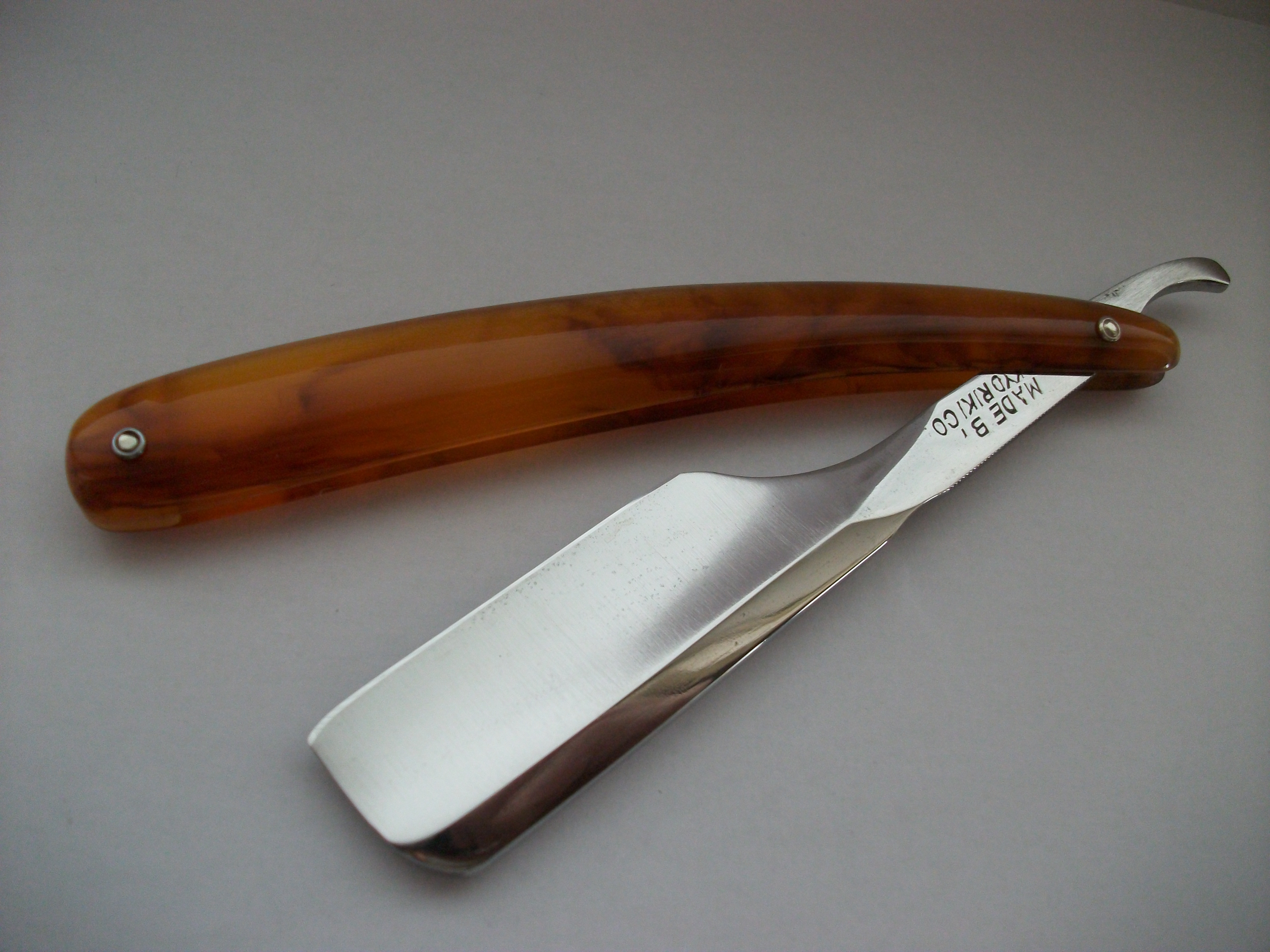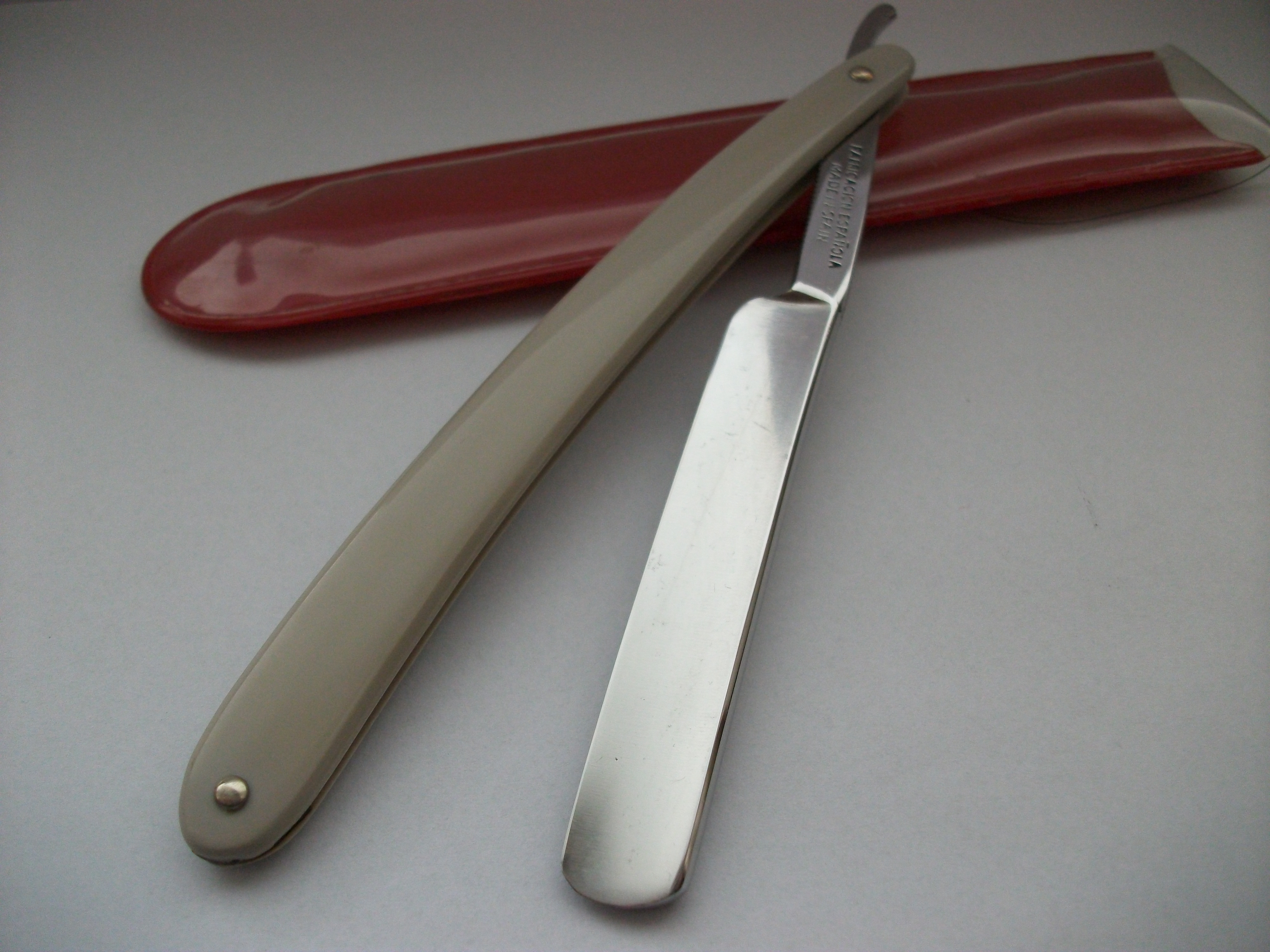 Достаточно популярный бренд среди западных коллекционеров. Углеродистая сталь, ширина полотна 20мм, длина режущей кромки 47мм, гринд - камисори. Ручка - пластик. Бритва не новая, следы времени есть. Продано Spoiler Show