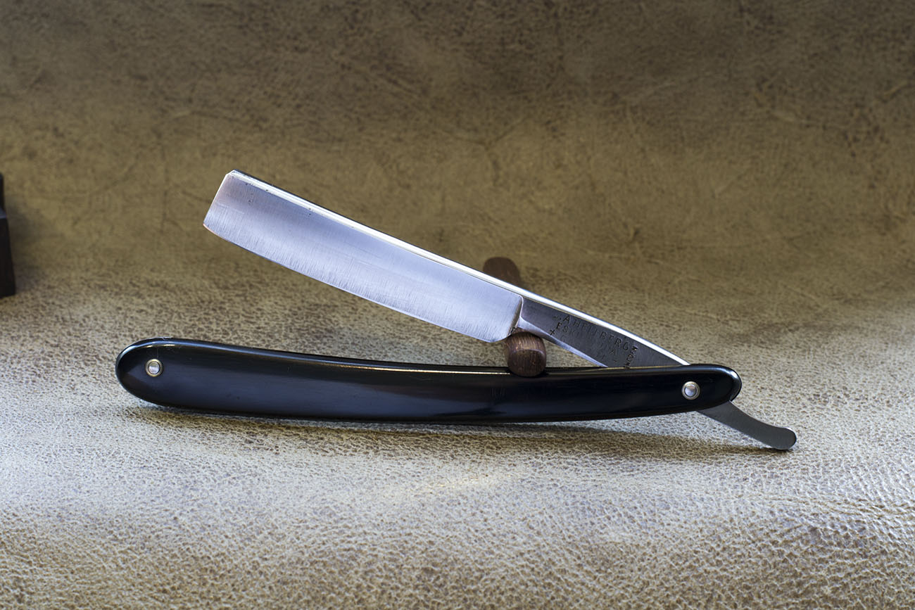 Английская бритва от известного производителя, только известен он не по опасным бритвам а по другим изделиям стальной промышленности, таким как безопасные бритвы, ножи, карманные ножи и прочая полезная в хозяйстве стальная мелочь. Бритвы весьма удачны в плане геометрии и стали – хорошо точатся, имеют довольно узкую и ровную кромку, данный экземпляр так же снабжен рукоятью из слоновой кости, ширина полотна 20 мм, бритва имеет отчетливо видную вогнутость со ступенькой, так называемый bellied ground но по сути бритва почти не отличима от таких же экземпляров с простой полной вогнутостью. Бритва была заточена мной впервые и никогда не была в использовании. Продано Lockwood Show