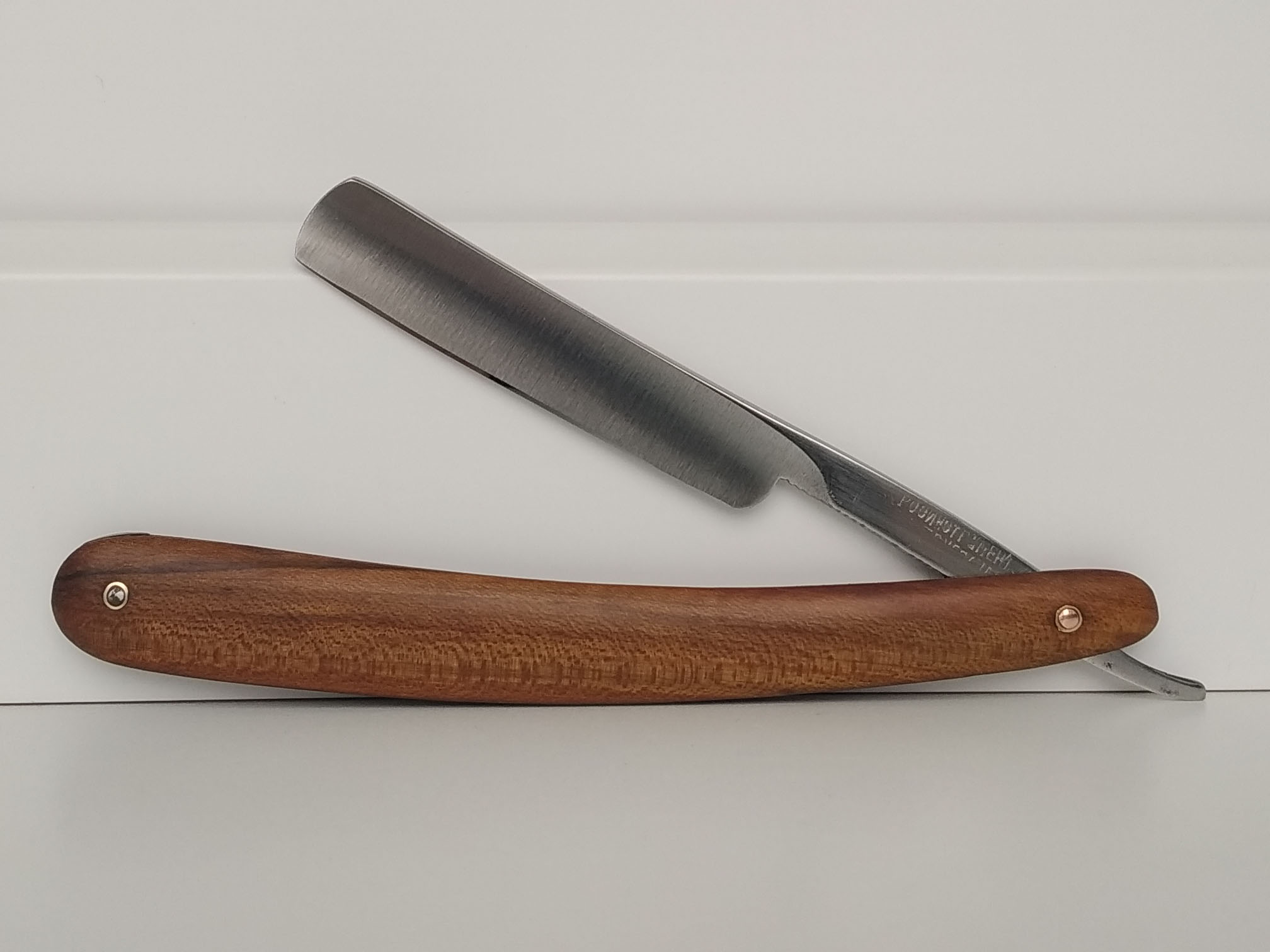 Продаётся от Alexey SamokatovБритва Росинструмент з-д Труд Вача Продам опасную бритву Росинструмент з-д Труд Вача, производство конец 1930-х, начало 1940-х. Бритва после ремонта и реставрации, в очень хорошем состоянии. Бритва разбиралась, прошла очистку, полировку. Заклепки - медь, шайбы оригинальные - латунь, оригинальная оправа - бук. После сборки клинок в оправе сидит плотно, не болтается. Бритва заточена, готова к бритью. Необычная, интересная форма клинка, с выборкой заходящей на эрль. По своим размерам наиболее близка к модели 1116 в каталоге от 1938 года. Клеймо производителя в нестандартном исполнении. Качество стали и комфорт бритья соответствует довоенным Росинструментам! Рекомендую!  Отправляю почтой, пересыл оплачивается отдельно, по России 150 руб. за заказное письмо. Цена - ПРОДАНО Spoiler Show