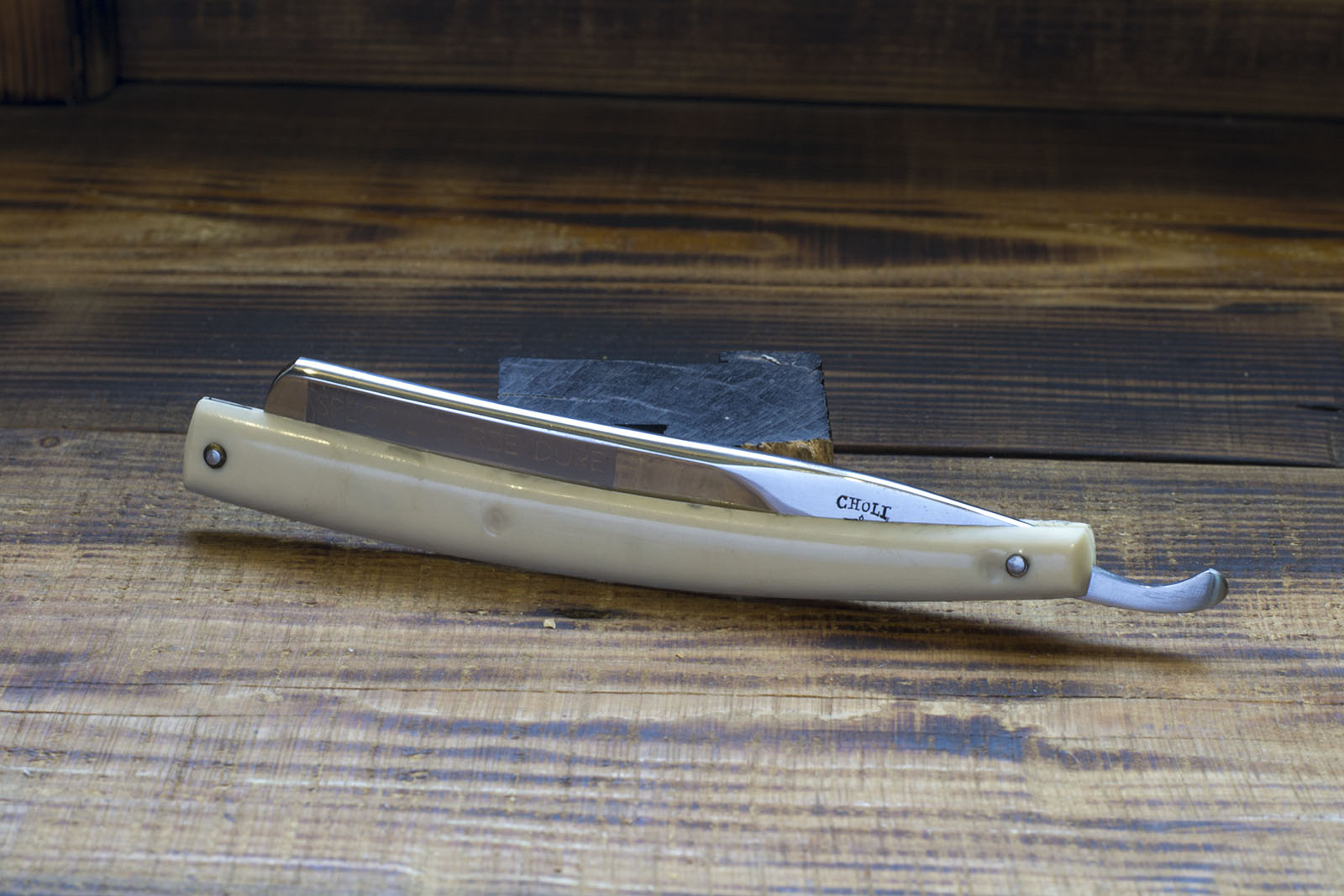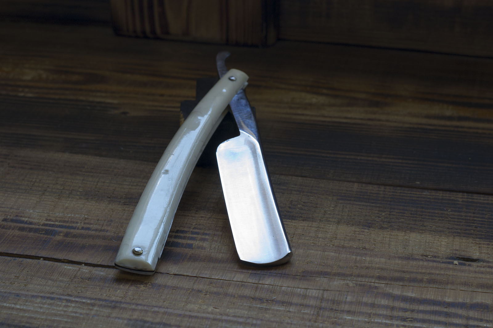 Продаётся от BorisCHOLI Опасная бритва, произведеннаяя во Франции в первой четверти 20 века, ширина 20.5 мм, белая рукоять из целлулоида, характерной для того периода формы и качества, сделана довольно добротно но имеются некоторые размытые вкрапления другого цвета, кроме того есть пара небольших углублений, вероятно являющимися технологическими дефектами, которые никак не влияют на функционал и прочность. Вогнутость полотна - 1/2, бритва изготовлена из качественной углеродистой стали, при этом имеет прекрасную геометрию, фаска режущей кромки тонкая и равномерная, уверен что бритва не была в использовании и несмотря на почтенный возраст сохранила фабричный вид. Не подвергалась каким либо работам, кроме ручной полировки и заточки. На полотне травление - Special Barbe Dure - специально для жесткой щетины, думаю это абсолютно справедливое утверждение, так как бритва имеет все предпосылки для длительного удержания заточки и бесшумного, за счет вогнутости, удаления щетины любой жесткости. Бритва заточена и готова к бритью, прекрасно подойдет новичку, отличная альтернатива современным бритвам из Франции. Продано Choli Show