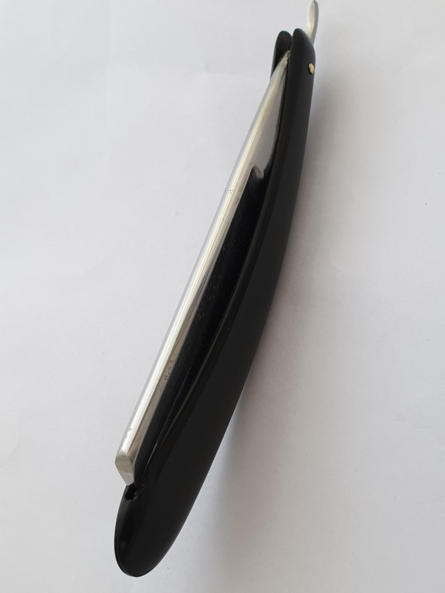 Продаётся от S&T44. Шеффилдский клин в весьма почтенном возрасте, Joseph Rodgers и сыновья. Форма клинка и хвостовика характерны для первой половины XIX века. Ширина клинка 16мм. Ручка из рога, переставлена с бритвы-донора. На фото рабочая кромка практически не видна, но она есть, тонкая и ровная))) Бритва заточена.