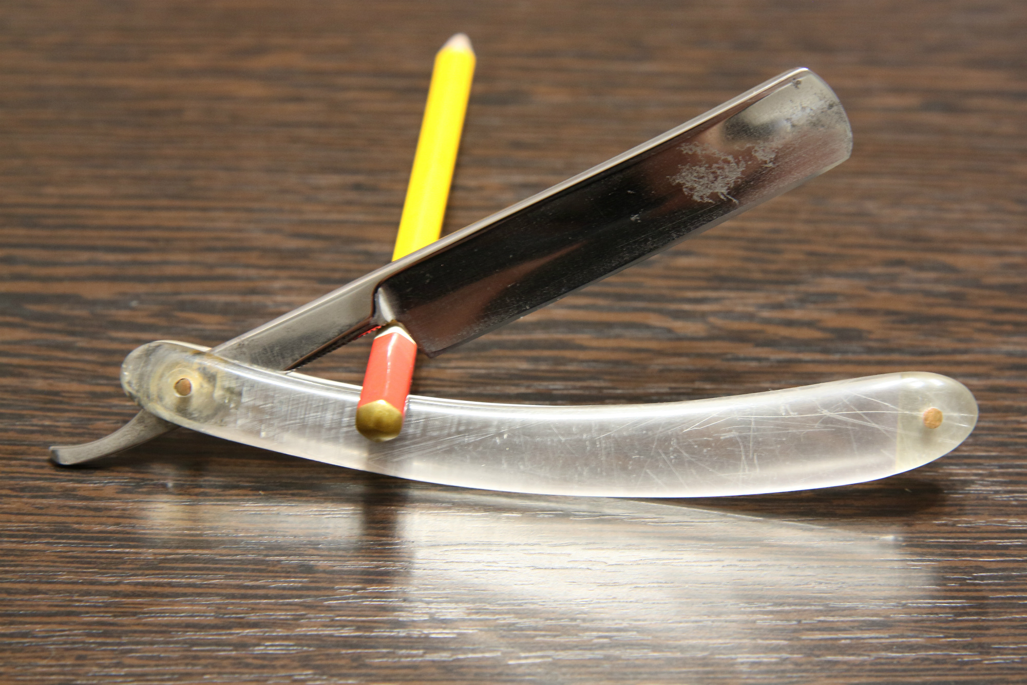 Опасная бритва ручной работы, не серийка, сделана в Японии в какой то общине, ширина полотна 20 мм, профиль полуклин, ручка из перламутрового пластика, все родное. Сталь Ясуки, их традиционная твердая углеродка. Подготовлена мной к бритью (сносит любую щетину как бульдозер за счет веса и профиля). Цена - руб.
