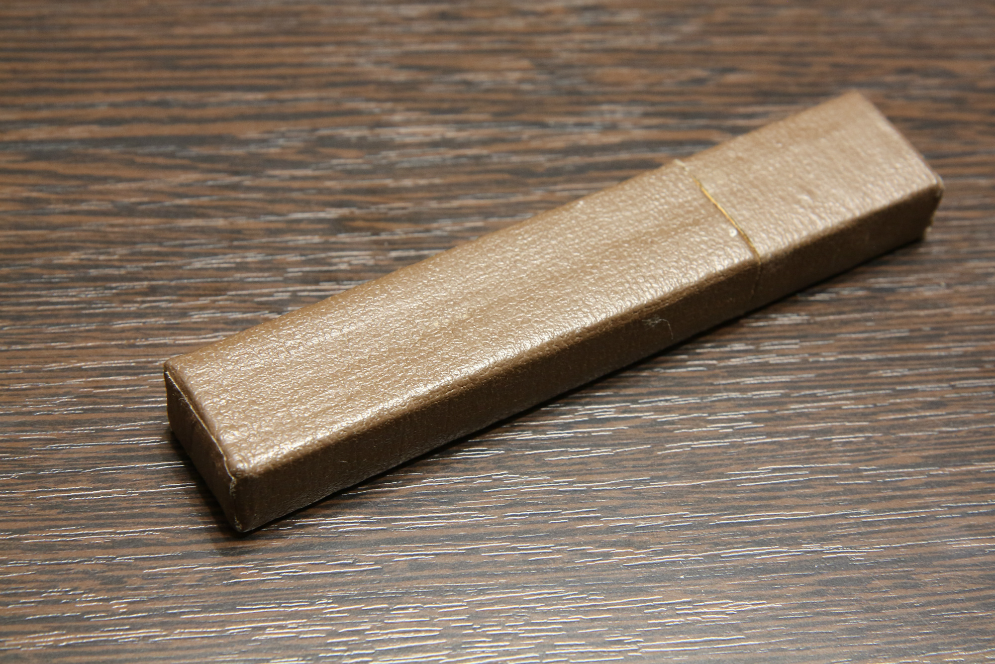 Синтетический японский водник King, зернистость 4000 по JIS, старого производства (сейчас именно такие не делают). Куплен на аукционе в Японии. Размеры 210х70х22 мм. Раскололся пополам от падения, сделал ему стяжку из оцинковки и подготовил поверхность. Трещина забьется суспензией и будет работать штатно. Есть скол одного угла и скол на одной грани, на фото видно. Связка бакелитовая, много воды не пьет, сохнет быстро. Использовал его с суспензией (ботан или синтетический слурик) после 1000 для затирания рисок, справляется за 6 - 7 минут и готовит кромку к тонким природникам или 8000 синтетику. Вообще, отличный камень, после его раскола, заменил его суитой, поэтому к нему так и не вернулся. Цена - руб.