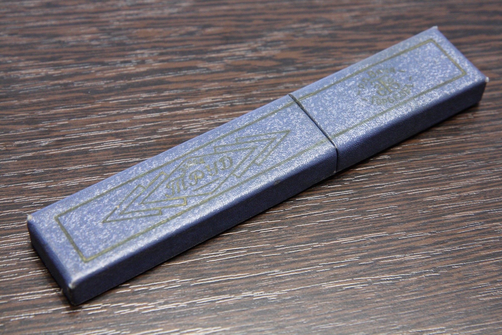 Опасная бритва Ракета, завод СТИЗ, 1965 год. Ширина полотна 15 мм, все родное, футляр тоже. Почистил вручную с сохранением "Ракеты" и подготовил к бритью. Ракеты считались качественными бритвами и были довольно дороги (4 рубля). Сталь звонкая, твердости чуть выше средней, чем то немцев напоминает. Цена - руб.