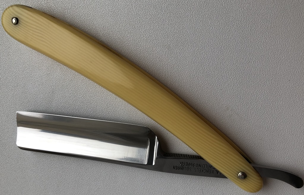 Все 4 бритвы разных моделей, в состоянии идеальное или близкое к идеальному... Непользованный J.A.HENCKELS.SOLINGEN ZWILLINGSWERK модель 72 Ширина полотна-20 мм Толщина обушка-5.8 мм Полная вогнутость. Сталь условно нержавеющая-FRIODUR INOX Бритва не разбиралась и не ремонтировалась, не имеет следов пользования.Заводская шлифовка и полировка. Полотно без царапин, следов окисления и других дефектов.(немного сошла синяя краска с букв на полотне, но это не принципиально).Идеальная геометрия клинка:кромочка равномерна по всей длине и еле заметна.Заточена и готова к бритью. Цена-9500 р с доставкой. ПРОДАН Spoiler Show