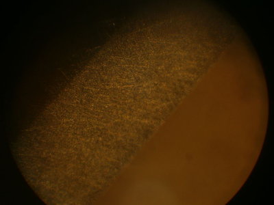 Вот несколько фото после стандартной заточки двух разных бритв под увеличением 135 крат, могу сделать лучше, но хуже - нет. Кромка у бритв очень тонкая.