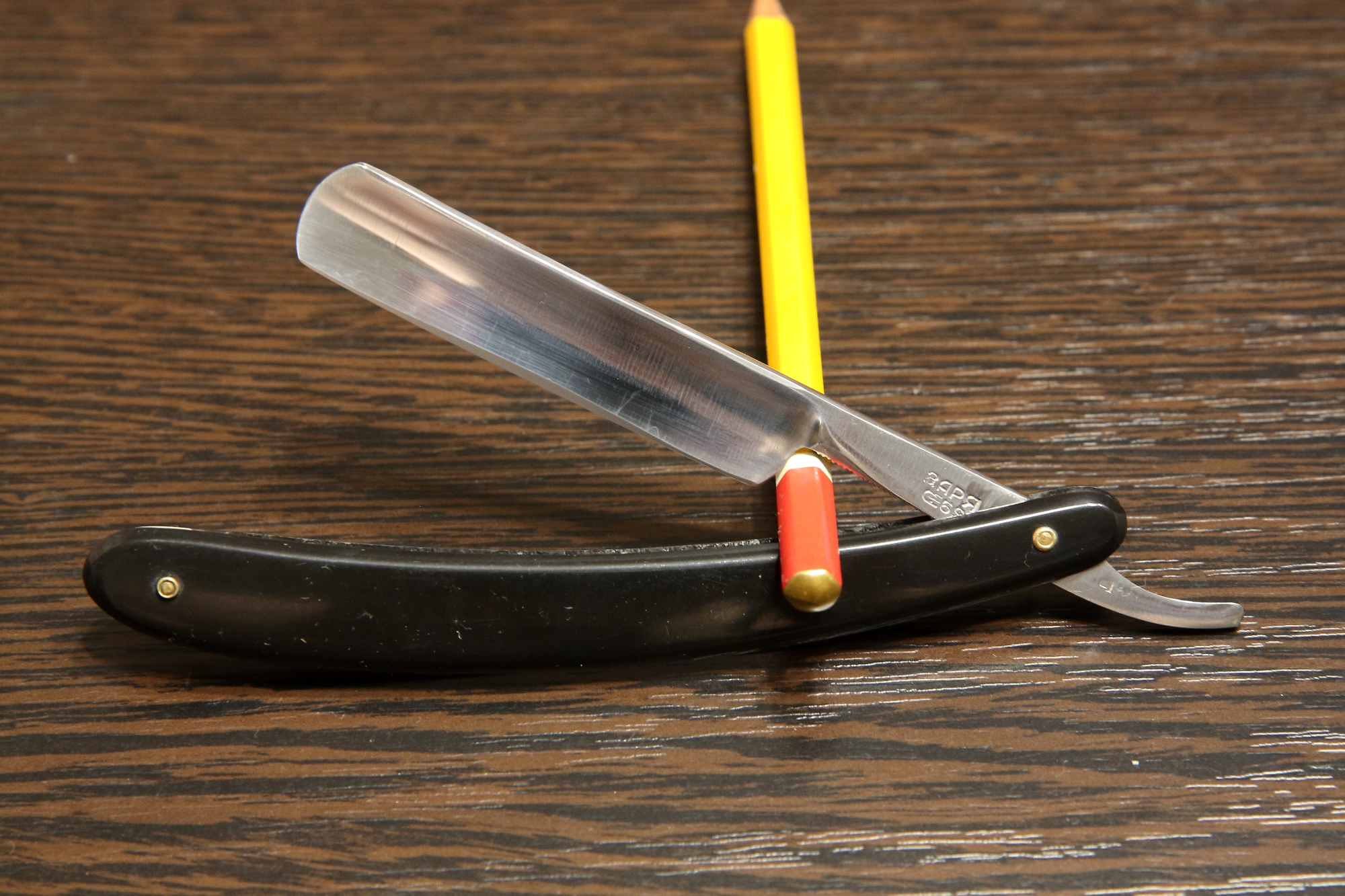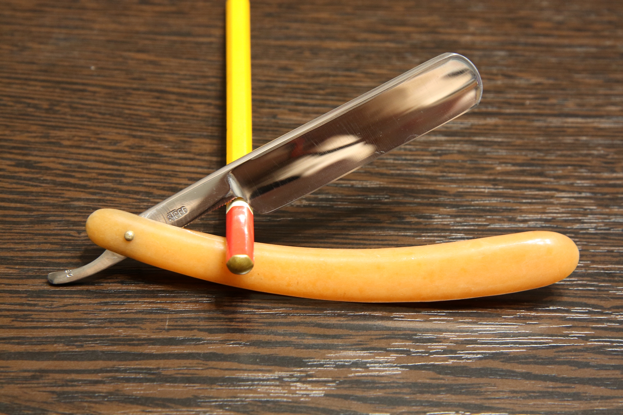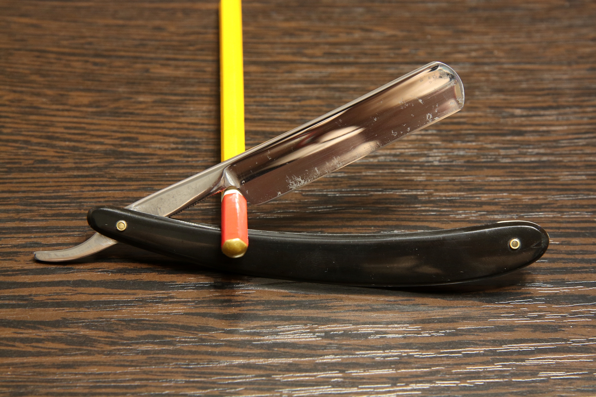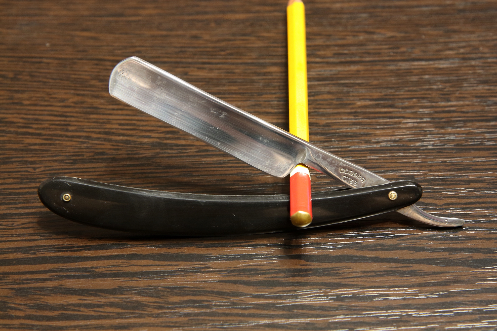 Опасная бритва Двухзаковная, завод ЗТВ (Вача), 1962 год. Ширина полотна 15.5 мм, двухзаковный клинок, все родное, футляр тоже. Пришла с заводской заточкой и без следов использования. Геометрия не совсем идеальна, но заточку я вывел полностью, в последующем затачиваться и правиться будет без проблем. Подготовлена мной к бритью. Сталь качественная (хотя и бреет несколько жестковато), верткий клинок. Двухзаковные от ЗТВ очень нечастые гости, особенно с ручкой такого интересного цвета. Цена - руб. К бритве рекомендую приобрести ремень для правки опасных бритв моего изготовления из итальянской кожи (подробнее на странице 4, объявления 56-58 и странице 9, объявления 127). Spoiler Show