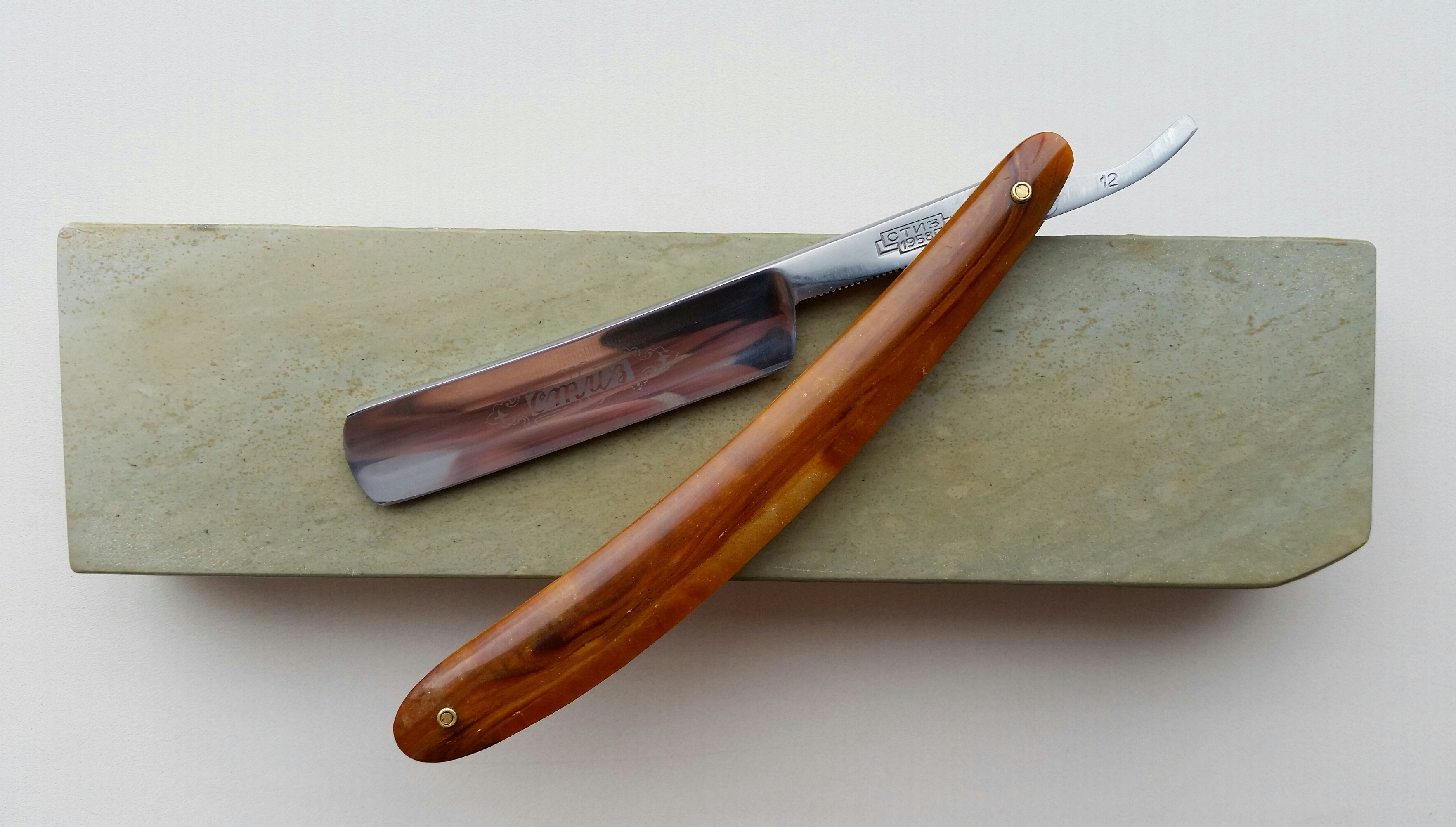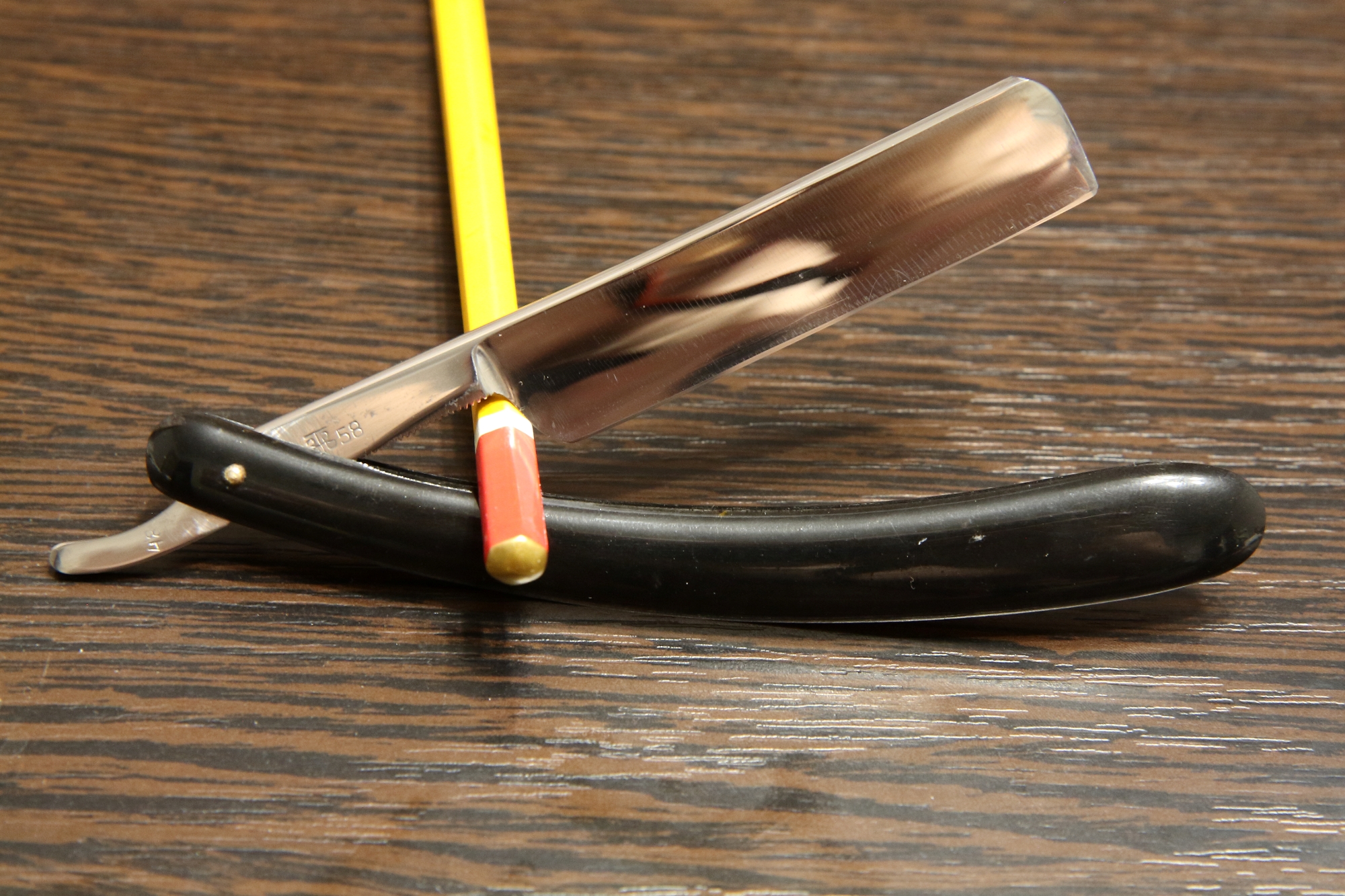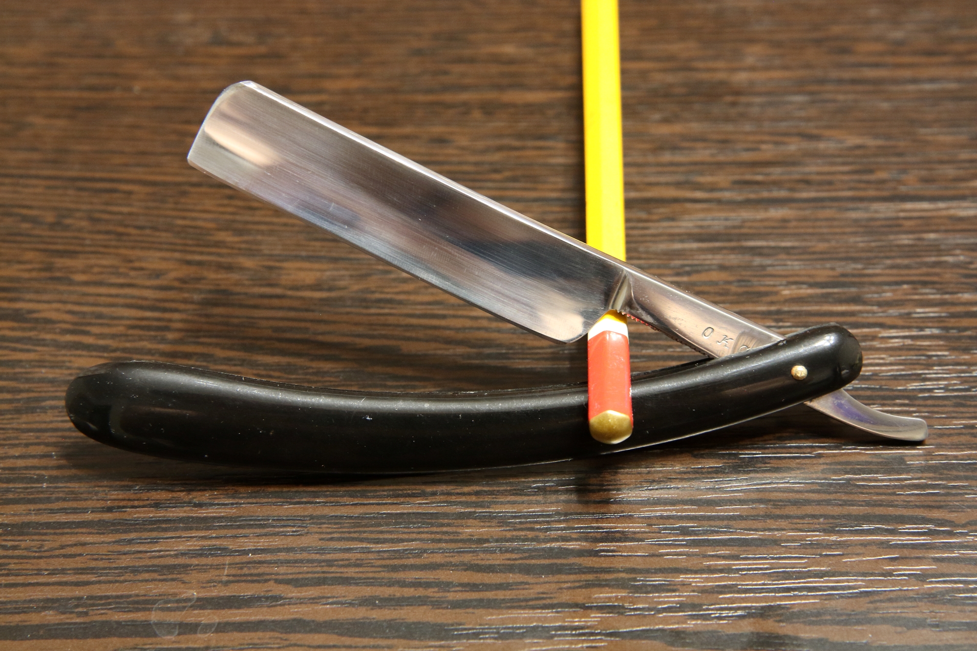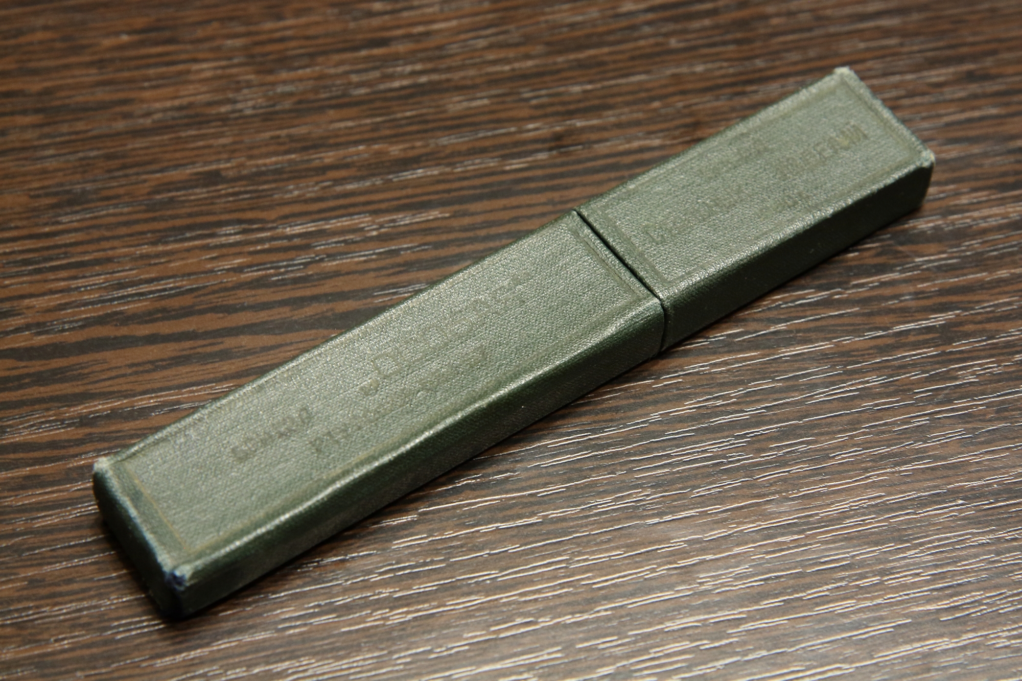 Опасная бритва Двухзаковная, завод ЗТВ (Вача), 1962 год. Ширина полотна 15.5 мм, двухзаковный клинок, все родное, футляр тоже. Пришла с заводской заточкой и без следов использования. Геометрия не совсем идеальна, но заточку я вывел полностью, в последующем затачиваться и правиться будет без проблем. Подготовлена мной к бритью. Сталь качественная (хотя и бреет несколько жестковато), верткий клинок. Двухзаковные от ЗТВ очень нечастые гости, особенно с ручкой такого интересного цвета. Цена - руб. К бритве рекомендую приобрести ремень для правки опасных бритв моего изготовления из итальянской кожи (подробнее на странице 4, объявления 56-58 и странице 9, объявления 127). Spoiler Show