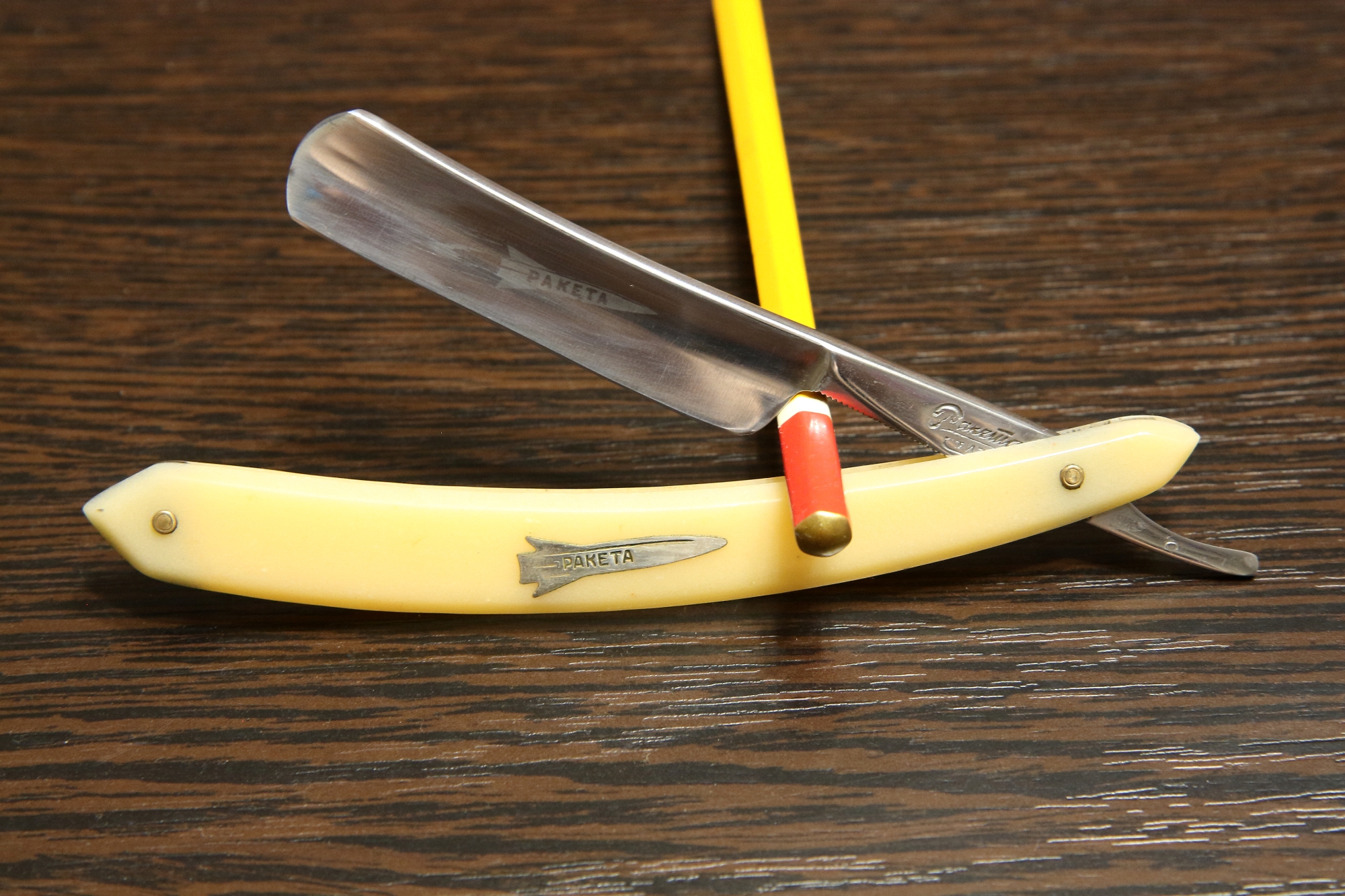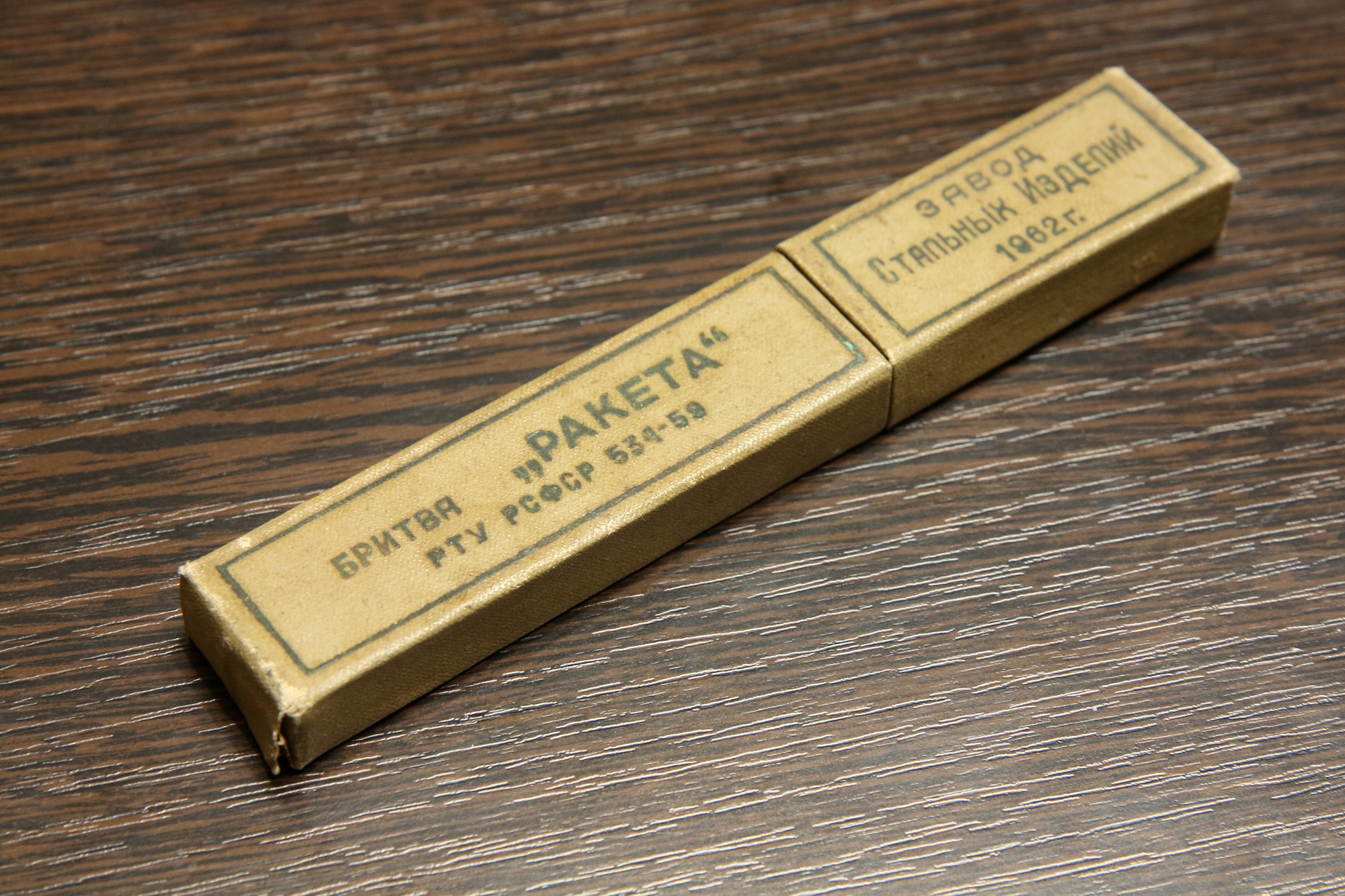 Опасная бритва Ракета, завод СТИЗ, 1962 год. Ширина полотна 17 мм, все родное, футляр тоже. Ко мне попала в очень хорошем виде, почистил вручную пастами с сохранением травления и подготовил к бритью. Ракеты были довольно дороги (4 рубля). Сталь средней твердости, с некоторой хромистостью, не подойдет для жесткой щетины - садится в моем случае. Цена - руб. К бритве рекомендую приобрести ремень для правки опасных бритв моего изготовления из итальянской кожи (подробнее на странице 4, объявления 56-58 и странице 9, объявления 127). Spoiler Show