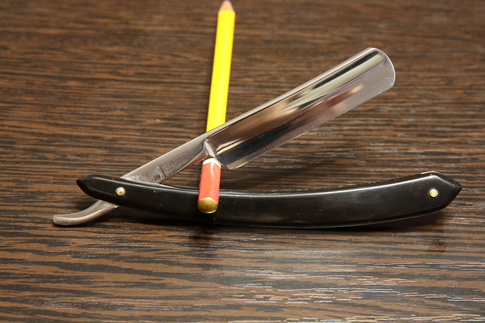 Опасная бритва Экстра, завод ЗТВ (Вача), 1966 год. Ширина полотна 18.2 мм, все родное в т. ч. футляр. Пришла без следов и в исходной ширине, вручную освежил полотно полиролью и заточил. Подготовлена мной к бритью. Бритвы Экстра ценились в парикмахерских за хорошие рабочие качества. Опробовал, отличное мягкое бритье, широкое полотно, удобная форма, качественная сталь, что еще нужно для хорошего использования. Цена - руб. К бритве рекомендую приобрести ремень для правки опасных бритв моего изготовления из итальянской кожи (подробнее на странице 4, объявления 56-58 и странице 9, объявления 127). Spoiler Show