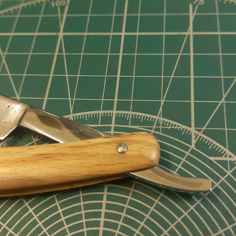 Датировать бритовку не могу, такая же Leresche et Cie проскакивала здесь в продажах у Boris (viewtopic.php?f=7&t=4441&p=85478&hilit=leresche#p85478). На хвостике выбиты цифры 60-4; может год выпуска, может модель... Досталась в жутком ржавом состоянии, но благодаря выборке в четверть, "мяса" для регринда осталось достаточно, да и коррозия на РК не выходит.