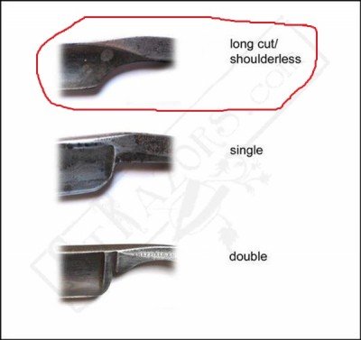 Работы с формами.Образовалась старая бритва, хорошо стерли обух, вот буду на ней тренироваться. Пока меня интересует вопрос, чем изменить форму перехода из ножки в лезвие вместо ступеньки на такой как мне нравится(на первой картинке), пока только представляется ручная работа с наждачкой и надфилями.