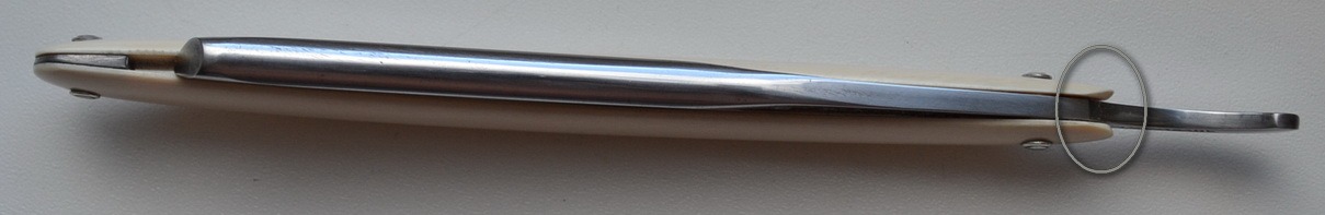 Бритвы ковались. Эрль шел в основном на клин. Сужался к хвосту и расширялся к полотну. При склепывании пакета с закрытым в ручку полотном, соединение уплотняется на столько, что при открывании в рабочее положение может закусывать острые грани вершинки ручки(той части что после пина). Вот и снималась фаска. Но это всего лишь версия. А так, если не копать, то просто красиво. -Рэбе, скажите, зачем нам обрезание? -Ну, во-первых, это красиво...