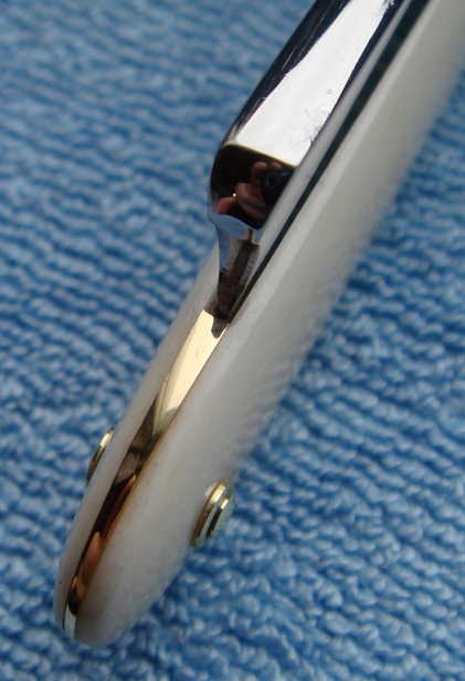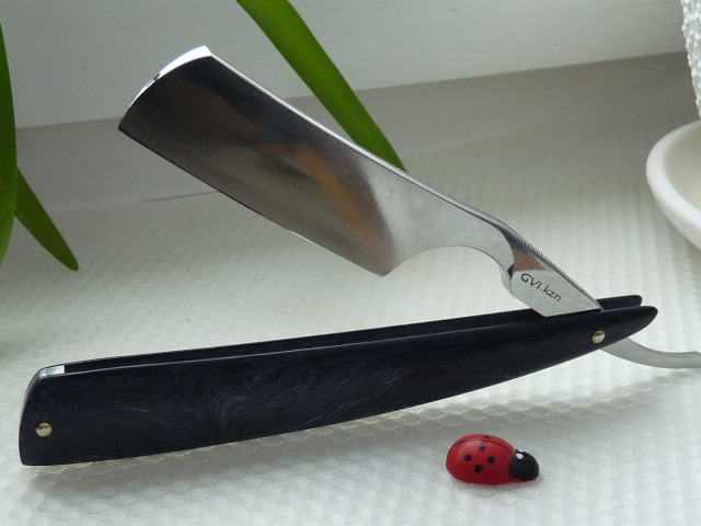 Re: Ручка (оправа) бритвы - изготовление/ремонтВот ещё примерчик использования/сочетания современных материалов ручки, правда для старого француза. Но это Элфорин - современный заменитель/имитатор слоновой кости, сейчас идет на бильярдные шары и накладки клавиш для фоно. Добавлено спустя 3 минуты: А вот старый англ с Юмой (последнее фото), на мой взгляд - совсем не сочетается.   Хотя фактура Юмы тут более контрастная, чем на ГВИКовой бритве (потому и выложил). Вот такое эссе в фото про новые пластики и их сочетания в ручко-бритвенных делах.  Пардон за фото ещё раз.