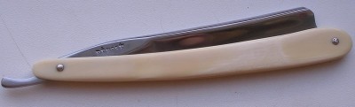 Re: Ручка - ремонт, замена, изготовлениеКак бы и бритву делал, а вроде и ручка, в общем размещаю сюда. С мохнатым слоном работал впервые. Профиль четкая копия родной роговой ручки. Бритва тоже интересная. С одной стороны англичанин Роберстон и ко Шеффилд, а в от с другой старинное клеймо на французском от ДЕПОЗЕ.