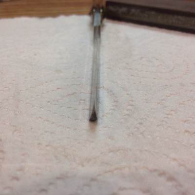 Наткнулся сегодня на барахолке на такую бритву, не знаю почему, но очень захотелось и прикупил... интересует ваше мнение- на сколько она живая, можно приспособить для бритья? ручка явно не от этого клинка, но это не страшно, руки, знания и материал есть-сделаю новую! Что значит 1? 5\8-это как я понял ширина в дюймах, получается 15мм, реальная ширина 12мм 9маловато наверно) и режущая кромка под ногтем прогинается((( Наша работа во тьме- Мы делаем, что умеем,