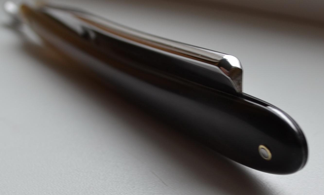 Re: Ручка - ремонт, замена, изготовлениеИнтересная игра оттенков рога на мой взгляд. Хенкельсу на новый лепень. Клинышек-олово. Пины от немца, нейзильбер.