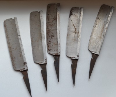 Клинки кованы вручную, геометрия просто обалдеть. Практически идеал. И это первая половина 19го века. Вот такой Марцеллот. А так как было их всего пять. То решил я сделать их полноценными бритвами. Вот что из этого вышло. Добавлено спустя 2 минуты 16 секунд: Продолжу. Хвостовики-это отдельная кропотливая и занудная работа. Спасибо нашлись помощники. Об этом потом. Добавлено спустя 1 минуту 19 секунд: И вот проект близится к завершению.