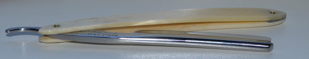 У некоторых моделей бритв эрль и хвостик закрыты целиковым куском слоновой кости. Большинство других производителей бритв обычно приделывали пластину слоновой кости к каждой стороне эрля и хвостовика. При взгляде на бритву сверху были видны щели между слоями слоновой кости и металла. Шестьдесят лет спустя современные коллекционеры замечают в этих щелях уродливые пятна ржавчины. В варианте Хенкельс видно, что в целиковом куске слоновой кости пропилен желоб, в который точно входят эрль и хвостовик. Обычно металлическая часть заканчивается сразу за заклёпкой, хвостик же остаётся почти полностью из слоновой кости. При взгляде сверху и сбоку можно увидеть только слоновую кость. «Сэндвич» из металла, облачённого в слоновую кость можно обнаружить только при взгляде снизу.