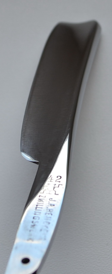 Набрел на такой Хенкельс №66. Очень большая бритва. Ширина 23мм, толщина обушка 6.3мм. Жаль только ручка не родная.