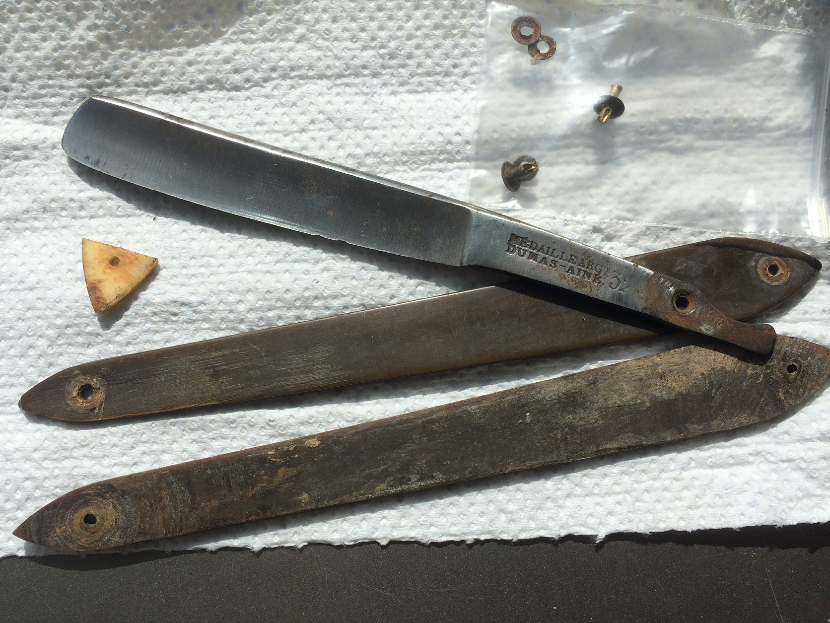 Dumas Aine 32На блошином рынке во Франции мне попался ножик от мануфактуры Дюма. Хотел купить, но ценник был конский и продавец мутный, типа из под полы продажа)))