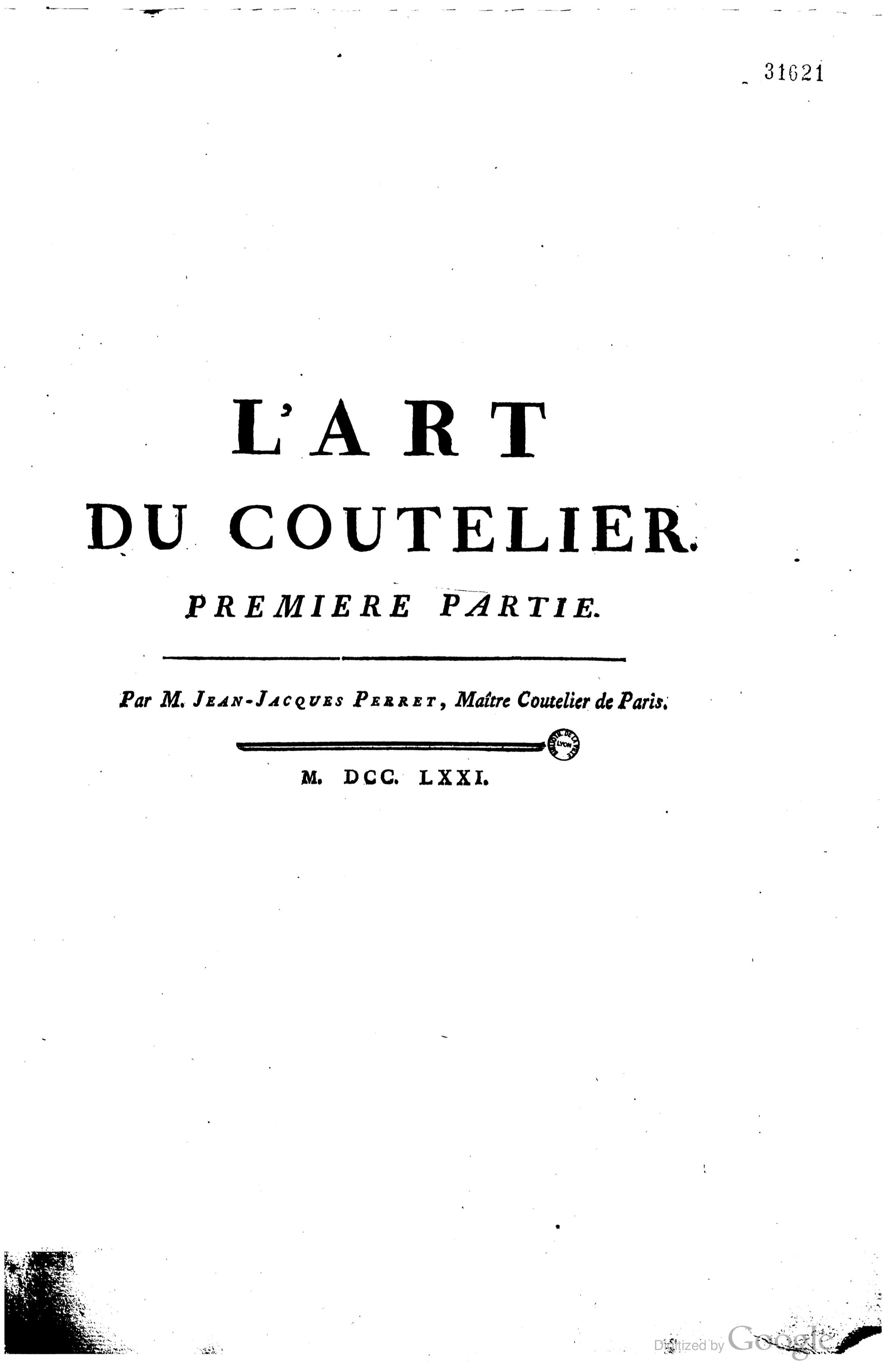 L'art du coutelier... par M. Jean-Jacques Perret, Maître Coutelier de Paris 1771 Автор Jean-Jacques Perret, Benard Ссылка на яндекс диск Spoiler Show
