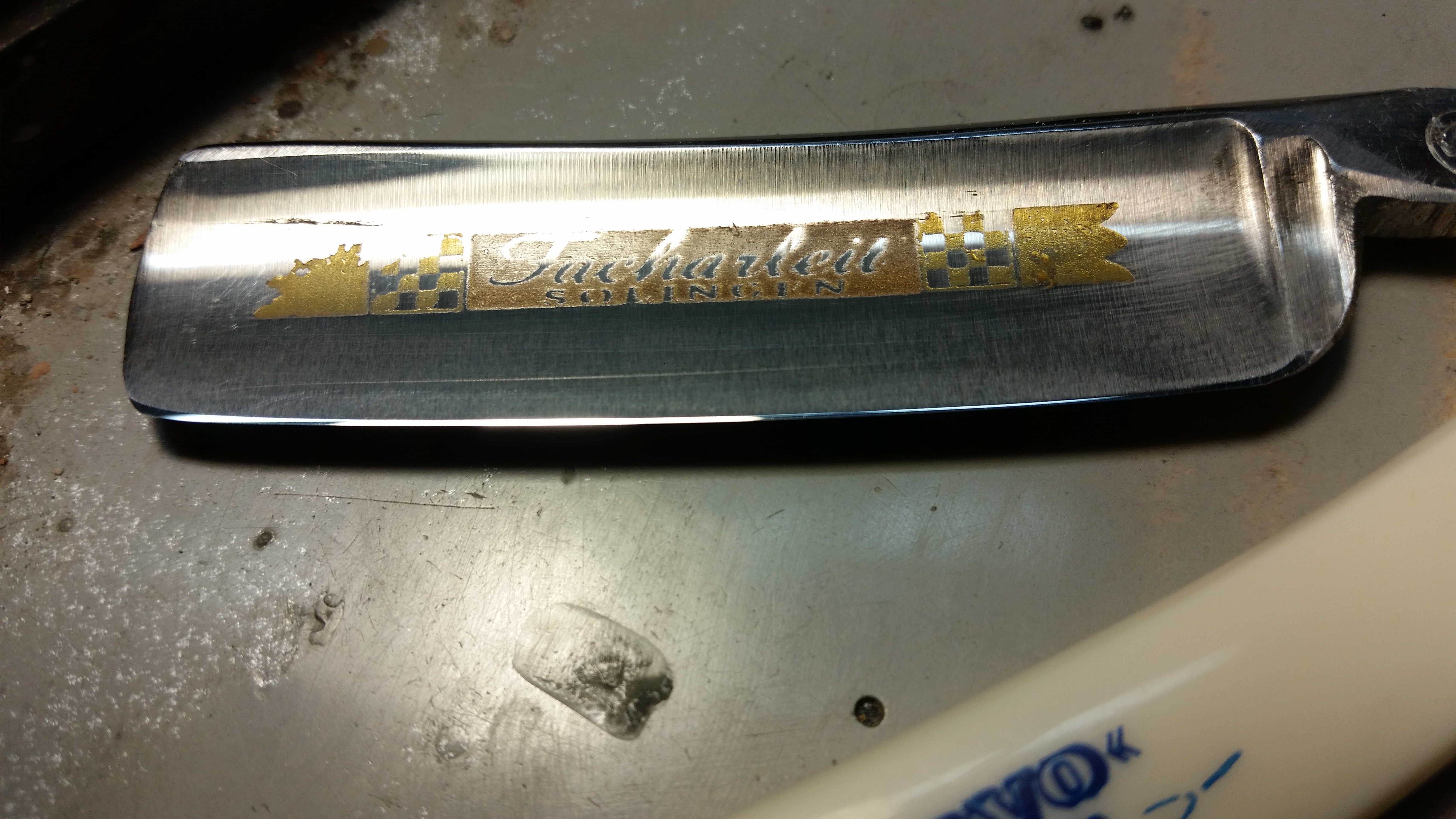 Ширина обушка-4мм.ширина полотна 15мм.Заточил на камнях Суехиро 1-3,далее нанива 10000,правка на чистом ремне.Результат бреет на уровне тупого Жиллета-щетина жесткая -бреюсь с распариванием.