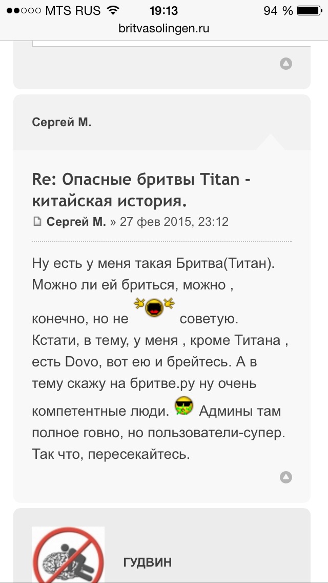 Re: Gold Dollar, TITAN (выбираем китайскую бритву)Что-то таких сообщений я не видел на сайте. Петр, а ты не выдумаваешь? Может ты в органах работаешь? Вот только органы не те, из под "хвоста" припахивают