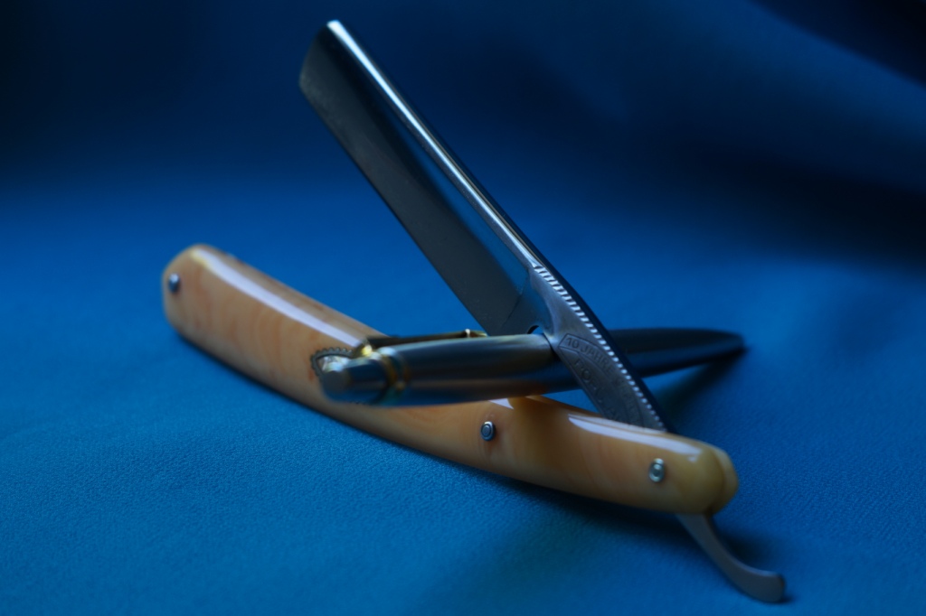 Made in Germany, from Best Puma Steel. Параметры: Размер 9/16 ( 14,3мм) Ручка -целлулоид Бритва без реставрации, легкая полировка и заточка. РК толщиной в ус Пумы. Все нюансы видны на фото, в жизни они не так заметны, но рука не поднялась их убирать, т.к. не увидел в этом необходимости и для её возраста это простительно. Сталь и геометрия бритвы выше всяческих похвал, шикарный рез. Продана киска Puma №7 Show