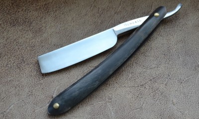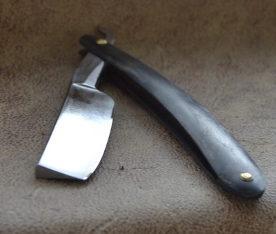 Старая Франция, предположительно начало XIX века. Массивный клин 7/8, рукоять рог, клинышек кость. При разборке обнаружилось еще одно скрытое клеймо. Отличная бритва в лучших традициях старой Франции. Продано Spoiler Show