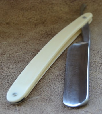 Германия, Золинген. Ширина 6/8, вогнутость полная, трехпиновая рукоять из целлулоида. Неиспользованная бритва после небольших реставрационных работ. Заточена и готова к бритью. Продано Spoiler Show