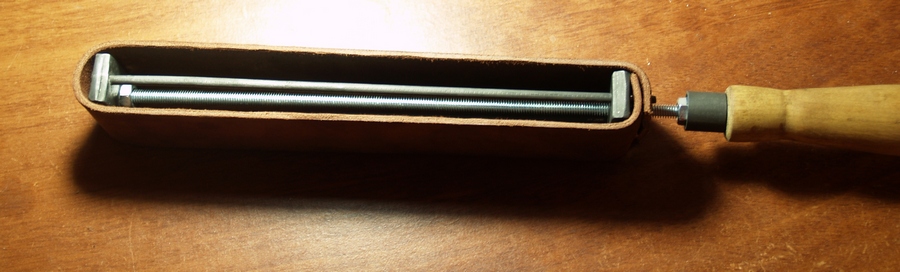 Шпильку и гайки заменил на новые. Железные части зашкурил сколько мог и заворонил. Деревяшку отшкурил, покрыл данишем. Кожа новая, от Мони. Муссолини харь псевдозаточкой. Типазаточник-параллельщик. Баблосгрёб.