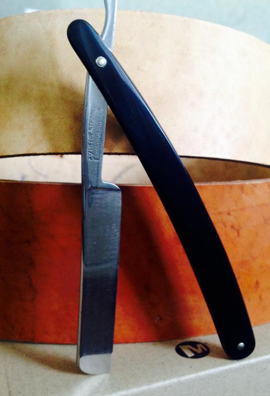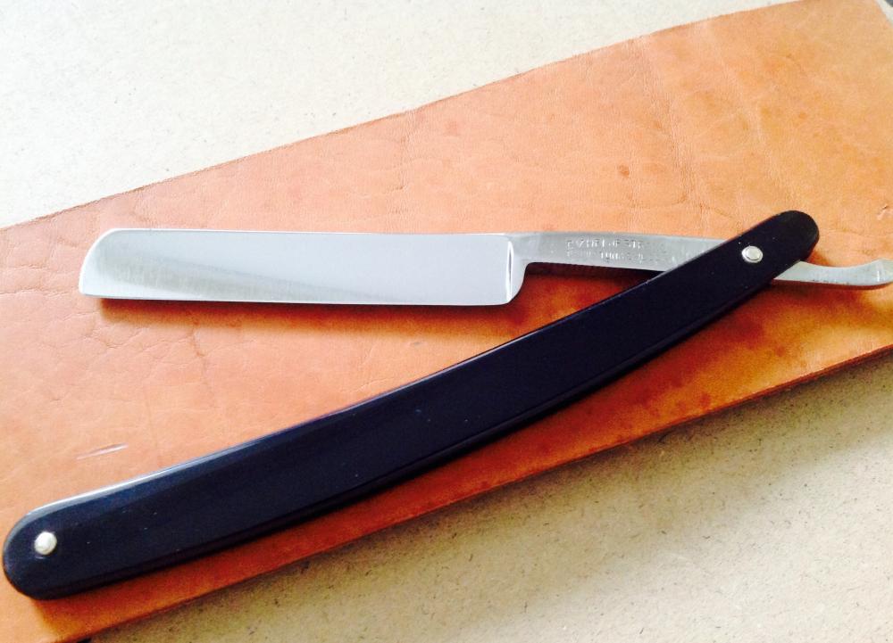 Ручка родная, в прекрасном состоянии, клинышек кость. Нижние пины от Егора. Полотно в хорошем сохране. Кромочка- ниточка! Длина режущей кромки 83 мм!!! Заточка как всегда N*X*S Spoiler Show Серьезный немец. Ширина полотна 6\8. Есть небольшие цяточки под обушком. Родной. кофр. Интересная форма. Бритье на "5+" Продана. Spoiler Show